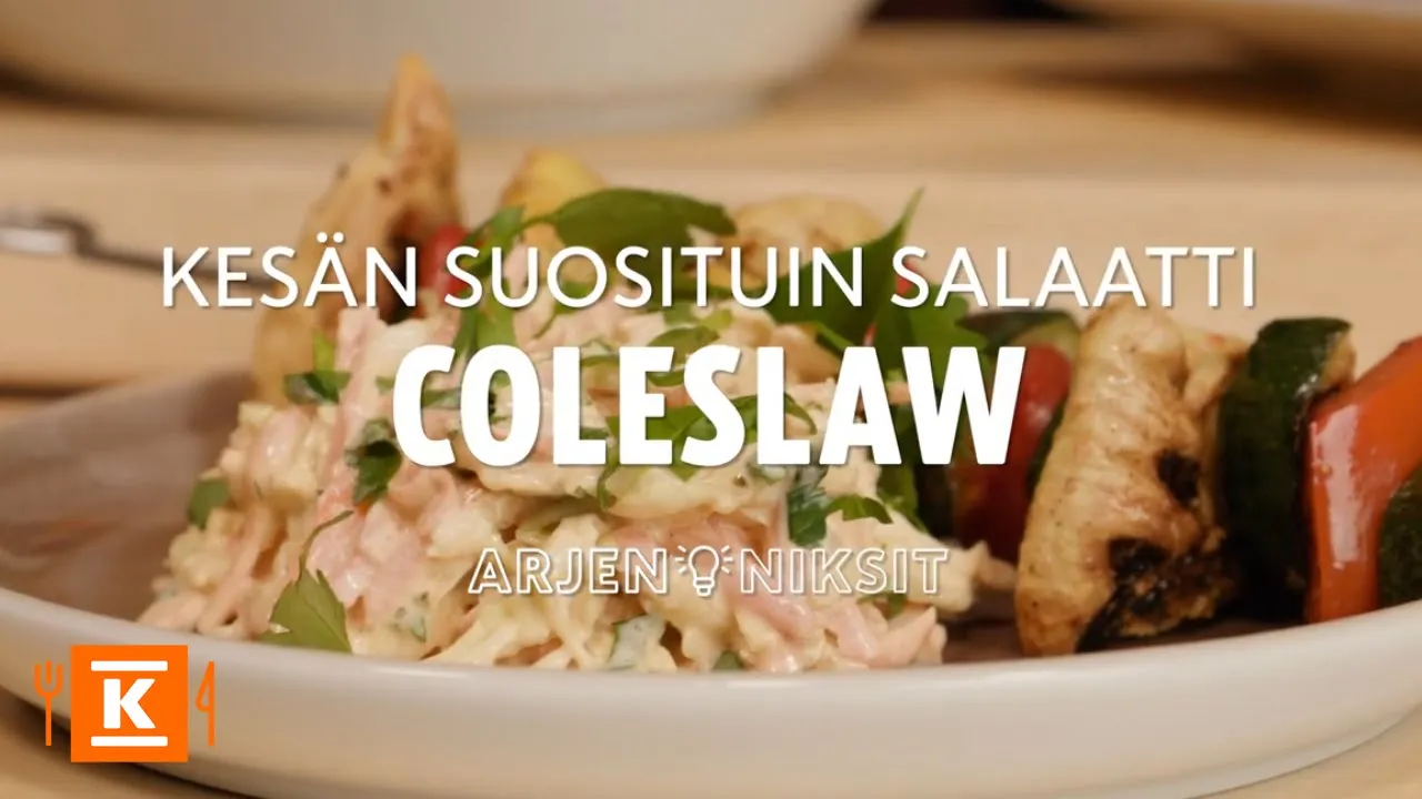 Coleslaw eli amerikkalainen kaalisalaatti on klassinen lisuke grilliruokaan. Maukas ja kermainen kaalisalaatti on helppo valmistaa, ja toimii takuulla kesän grillibileisiin. Katso videolta, miten saat helposti valmistettua coleslaw'n kesän grillipöytään!
