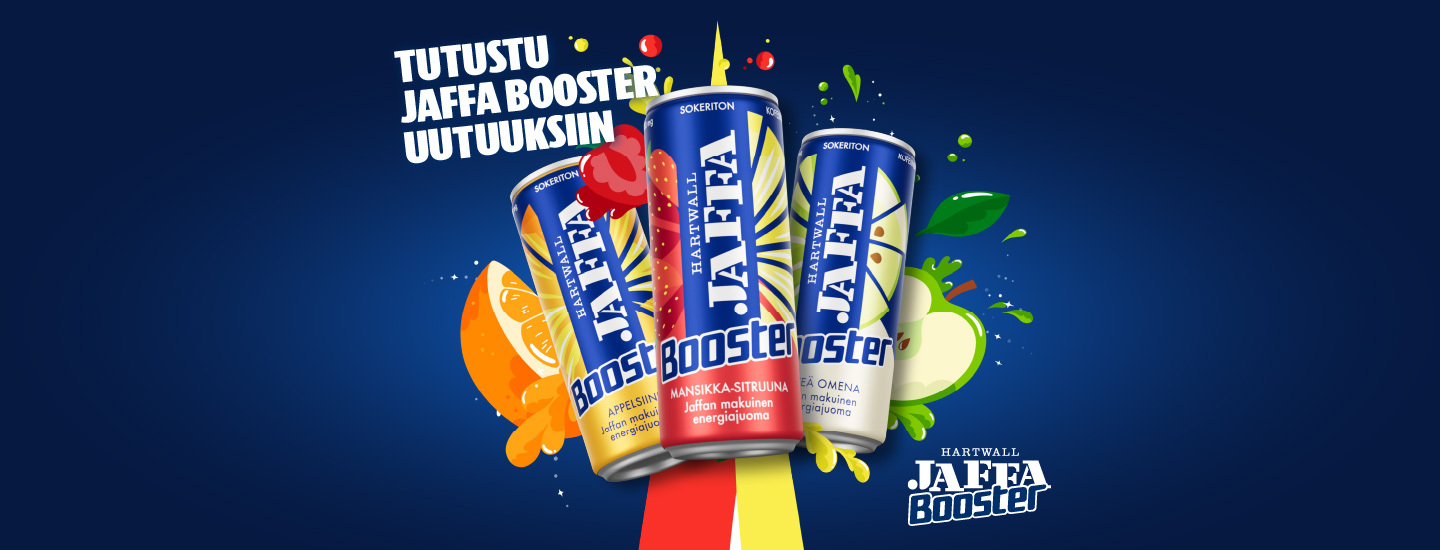 Uudet Jaffa Booster -maut ovat nyt täällä ja tuovat entistä enemmän virkistystä ja hedelmäistä raikkautta energiajuomavalikoimaan!