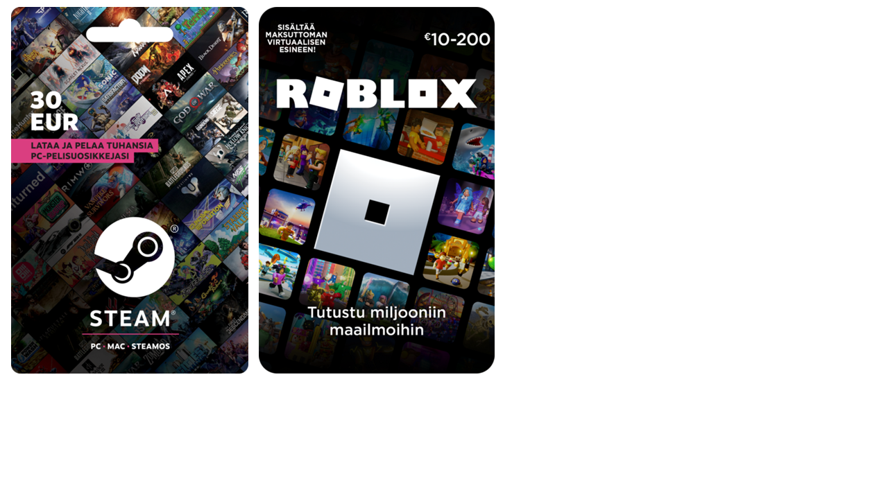 Lahjakortti suosittuun Roblox-pelimaailmaan! Roblox on globaali pelialusta, jossa voit pelata, osallistua ja luoda mielikuvituksellisia online-pelejä. Lahjakortilla voit Roblox-tiliäsi käyttäen lunastaa Roblox-krediittejä osoitteessa www.roblox.com.