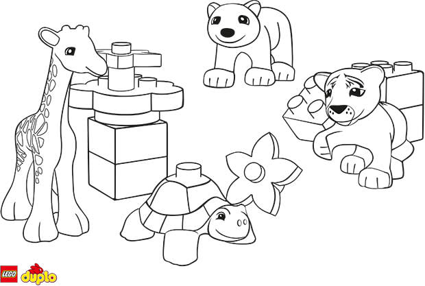 Tulosta LEGO DUPLO eläimet värityspohja.pdf