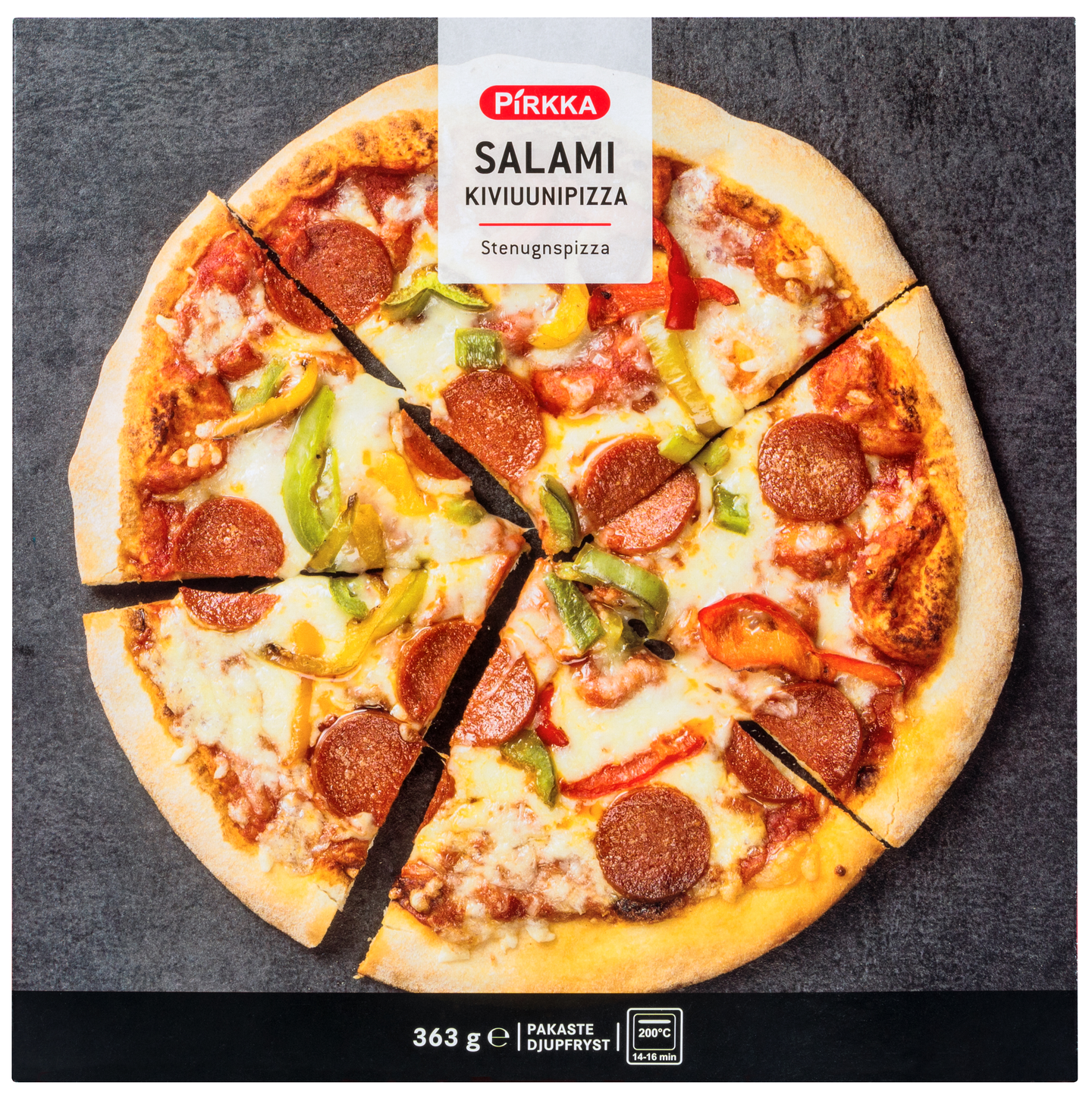 PIZZASANDWICH: Voit tehdä grillatusta pizzasta myös mainion pizzasandwichin. Paista ensin Pirkka salamipizza kypsäksi grillissä tai uunissa ja leikkaa sen jälkeen puoliksi. Täytä toinen puolikas tuoreella rucolalla sekä hienonnetulla chilillä ja punasipulilla. Nosta toinen puolikas kanneksi ja kiinnitä puolikkaat yhteen cocktailtikuilla. Leikkaa pizza vielä sandwichien tapaan kolmioiksi.