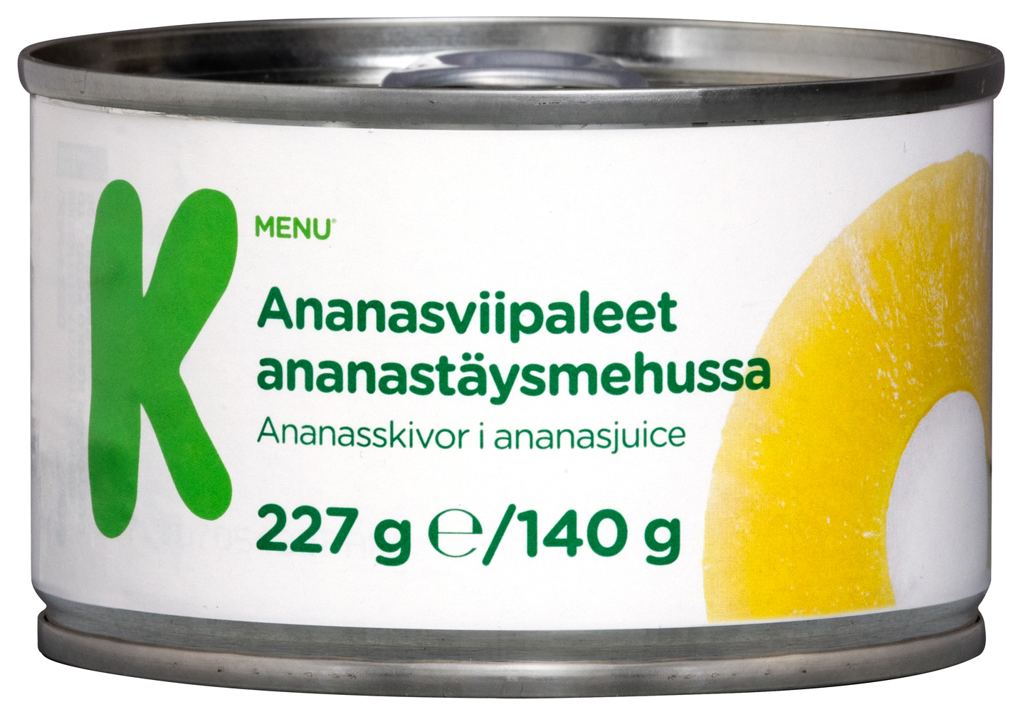 | K-Menu ananasviipaleet 227/140 g mehussa | 0,79 € | 0,79 € |