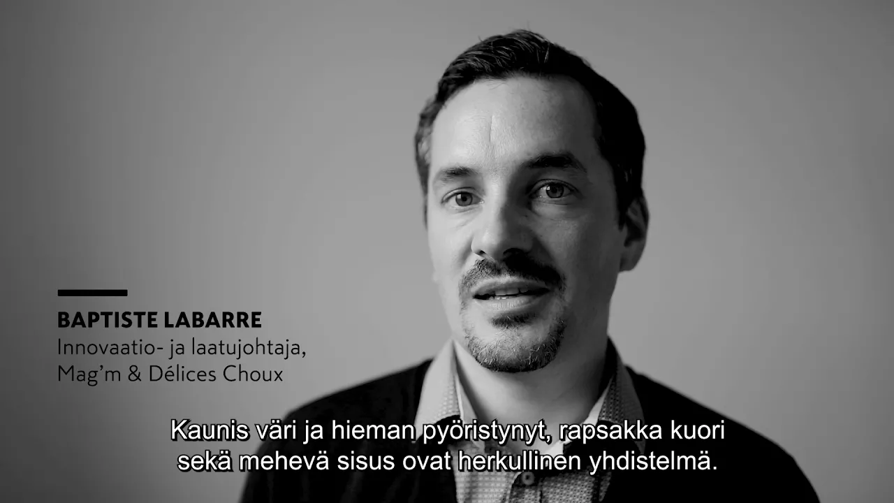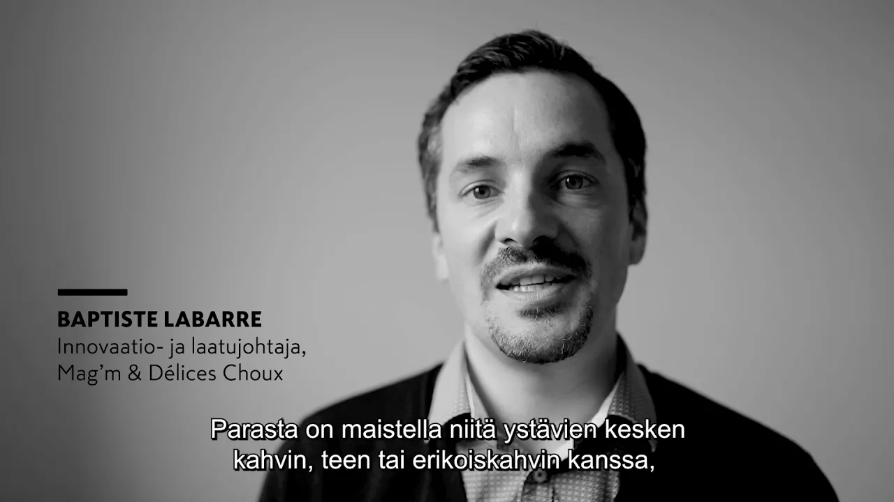 Mag’m & Délices Choux -leipomon innovaatio- ja laatujohtaja Baptiste Labarre, toivottaa meidät lämpimästi tervetulleiksi ja osoittaa pientä varastoa. ”Tarinamme alkoi tuolta. Kolme kaverusta, joista yksi oli jälkiruokien taitaja, toinen kauppatieteilijä ja kolmas insinööri, halusivat testata mihin yrittäjyyden siivet kantavat ja kantoivathan ne”, Baptiste aloittaa. Baptiste vastaa leipomon laatutyöstä ja innovaatioista. ”Olen insinööri, joka innostui mantelileivoksista. Tehtävänäni on saada tuotekehitys, valmistus ja markkinointi toimimaan mutkattomasti yhdessä. Sokerileipuri voisi kutsua minua prosessin voiksi”, hän sanoo hymyssä suin.