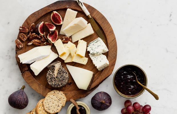 Kokoa juustotarjottimelle valikoima maukkaita Pirkka juustoja ja niiden makupareiksi herkullisia hilloja ja keksejä.