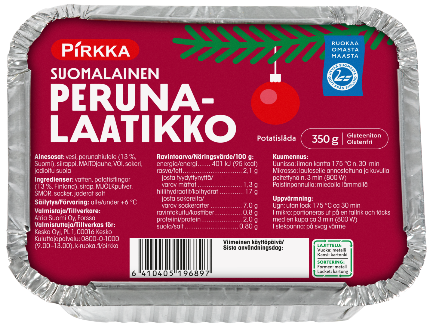 Pirkan valikoimasta löydät lämmitystä vaille valmiit perinteiset joululaatikot. Pirkan joululaatikot ovat valmistettu laadukkaista raaka-aineista ja ne saavat makua aidosta voista ja pehmeyttä ruokakermasta. Tuotteilla on Hyvää Suomesta -merkki.