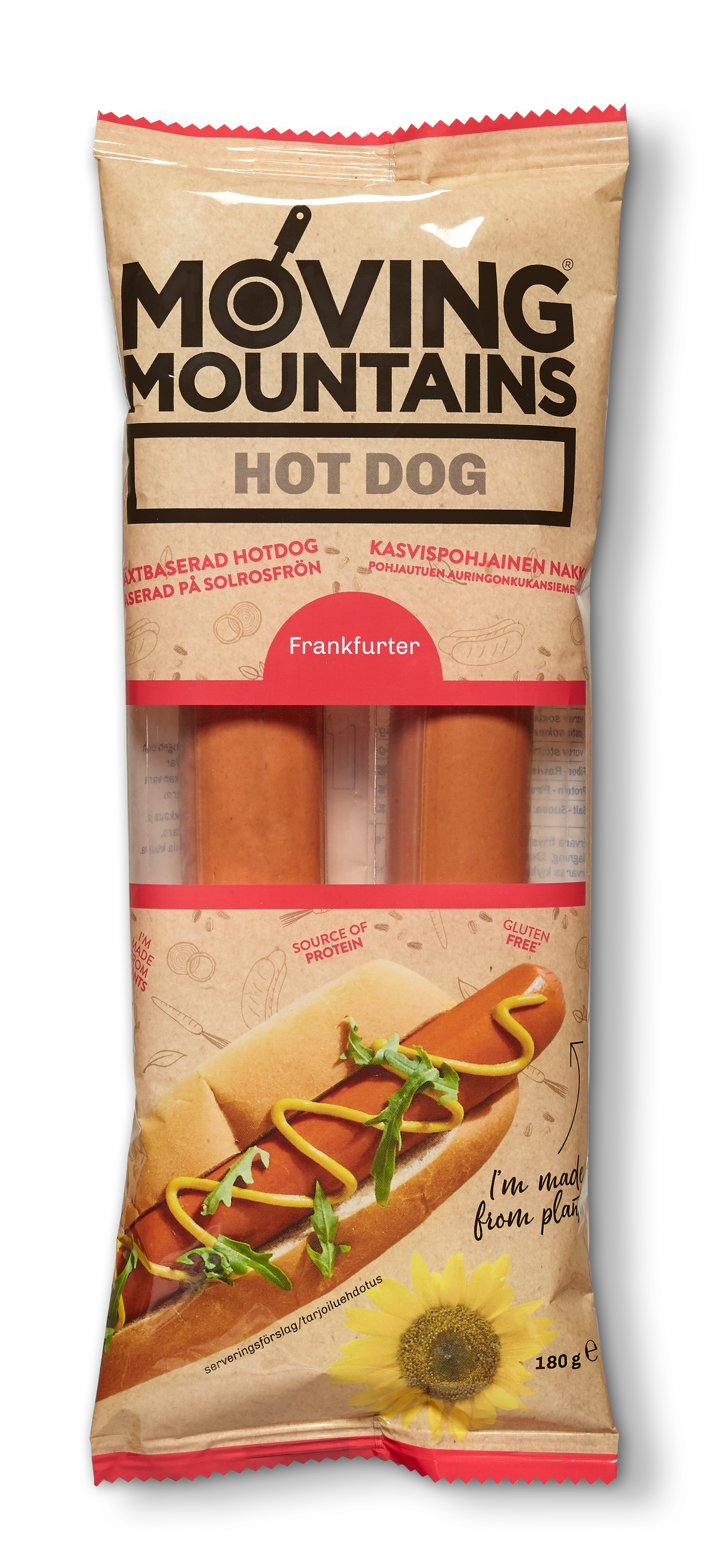 Lihamaisen hodarinakin ainutlaatuinen maku syntyy savustamalla. Valmistuksessa käytetyt auringonkukansiemenet sisältävät runsaasti proteiinia, B-ryhmän vitamiineja sekä mineraaleja. Moving Mountains Hot Dog -nakki on luontaisesti gluteeniton ja soijaton.