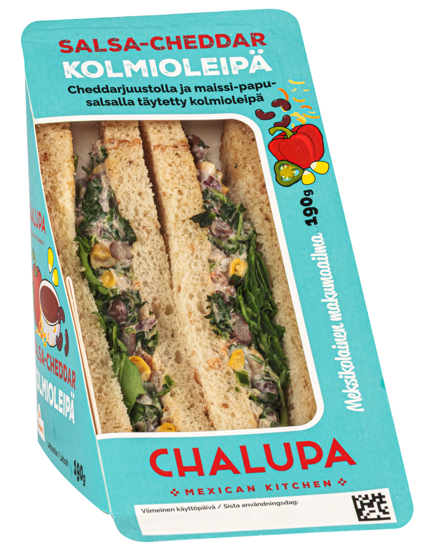 Chalupa-tuotesarjasta löydät perinteisiä ja autenttisia meksikolaisia tuotteita uudella modernilla twistillä; vain K-ruokakaupoista! Sarjan kolmioleipiin on nyt tuotu herkullinen meksikolainen makumaailma. Kana-taco kolmioleipä on täynnä mehukasta kanaa ja sopivan mausteista tacokastiketta. Cheddar-salsa kolmioleipä on täydellinen yhdistelmä cheddarjuustoa ja meksikolaista salsaa.