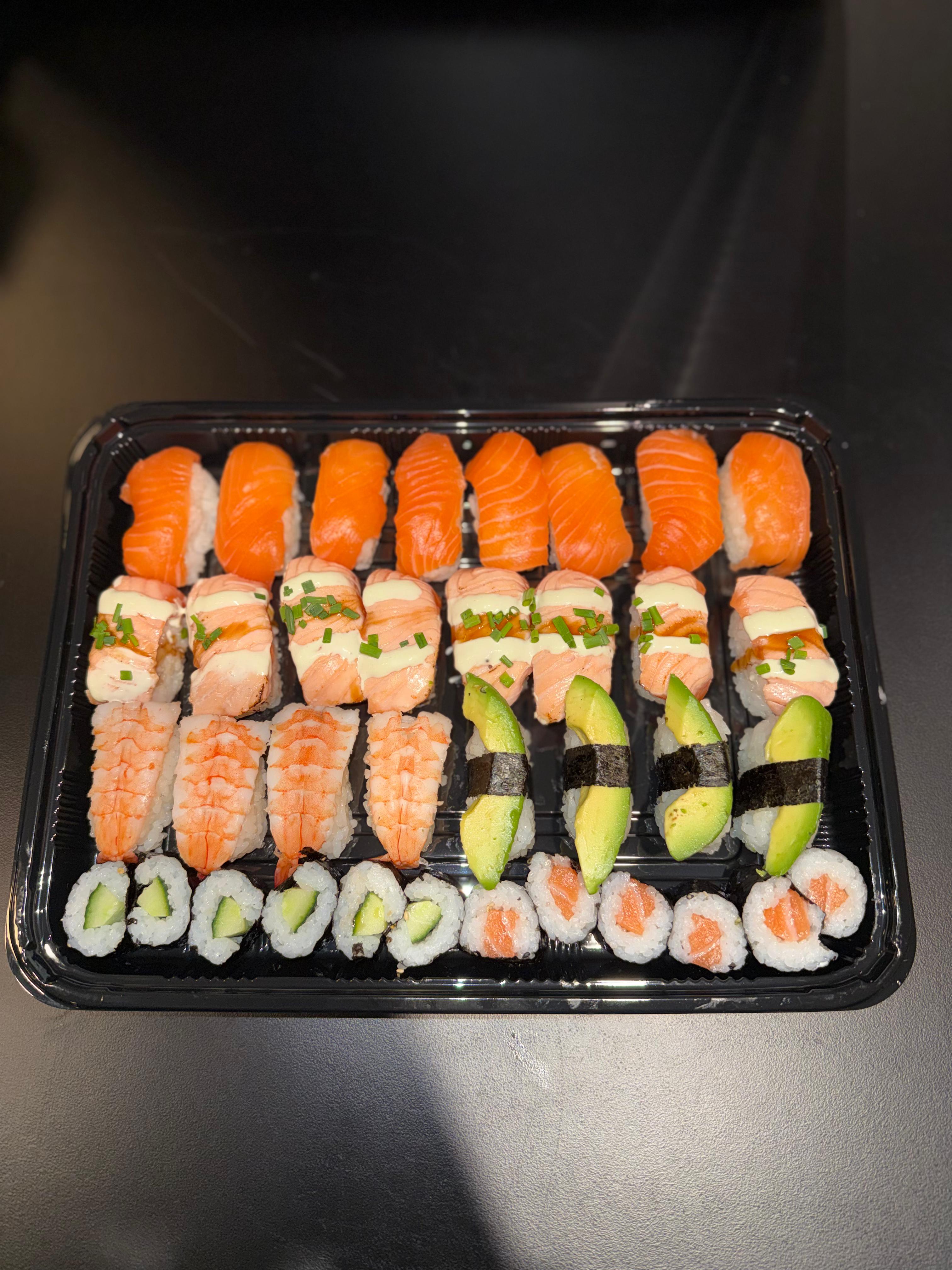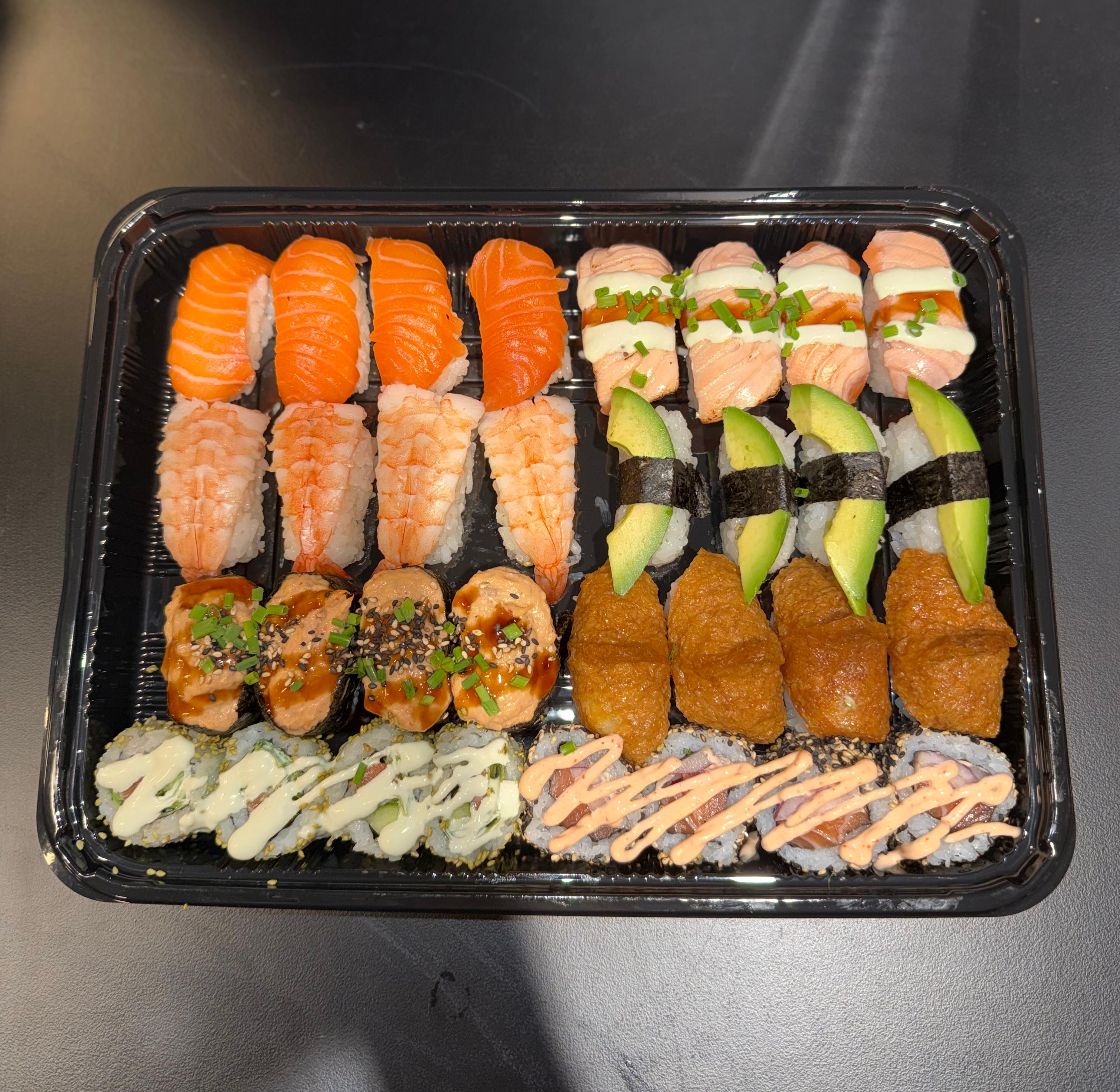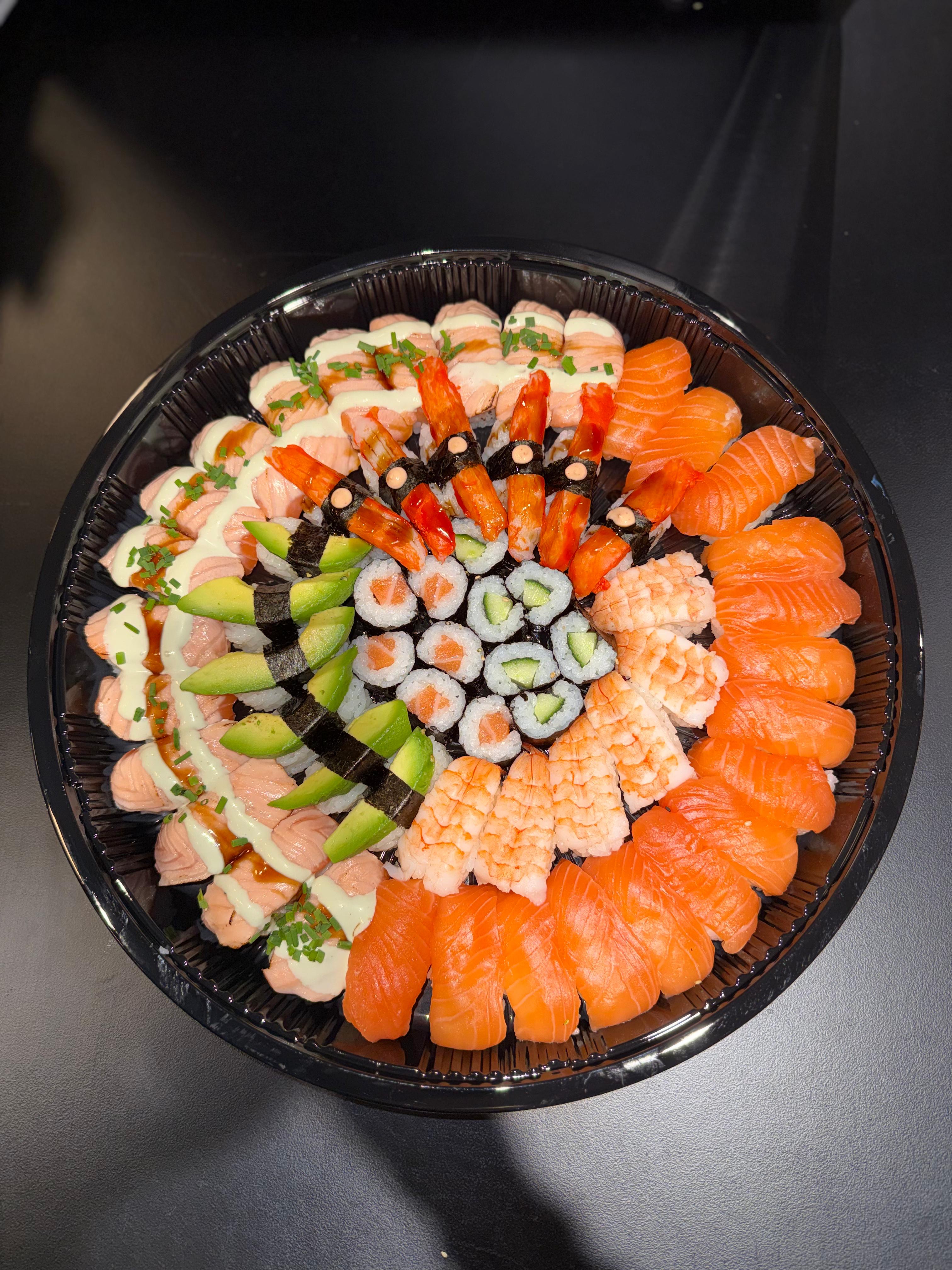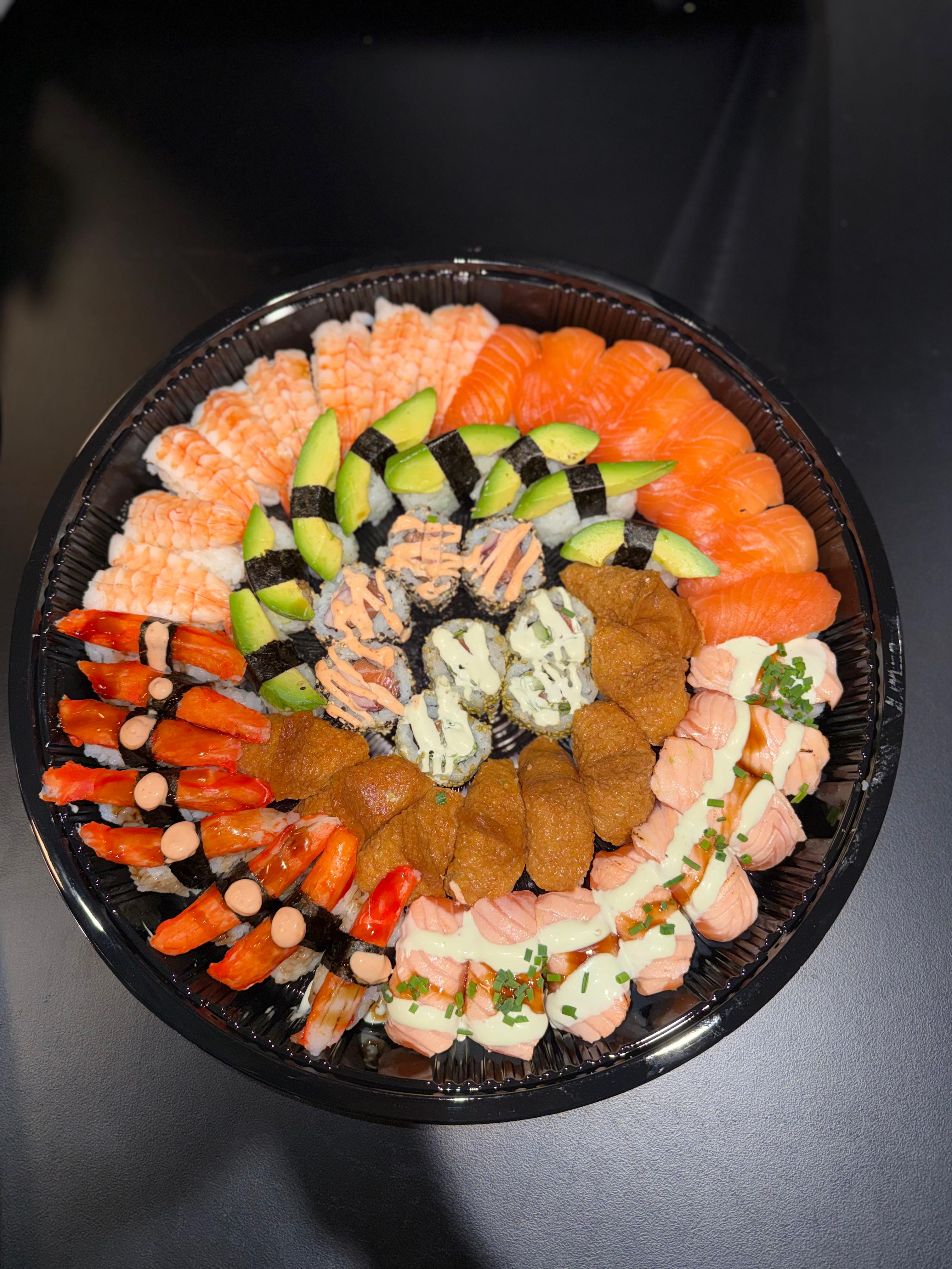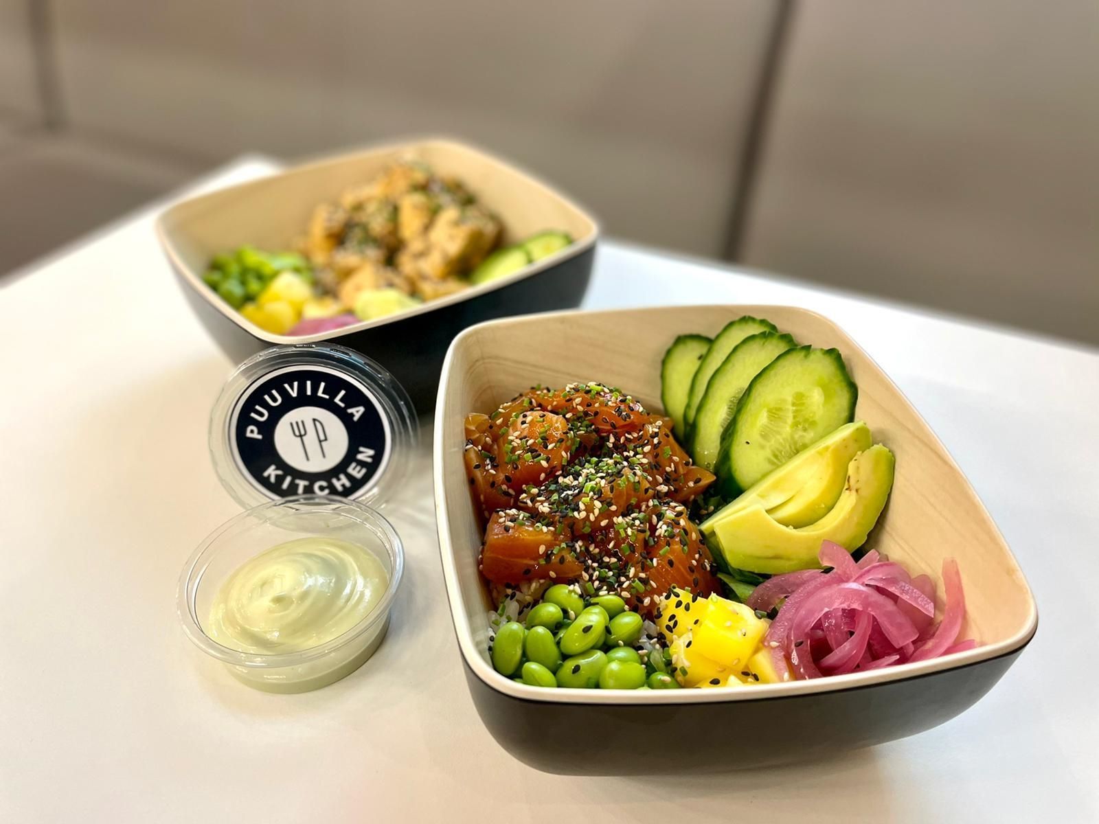 Puuvillan Kitchenin herkulliset meillä valmistetut tuoreet sushiplatterit ja sushibowlit.
