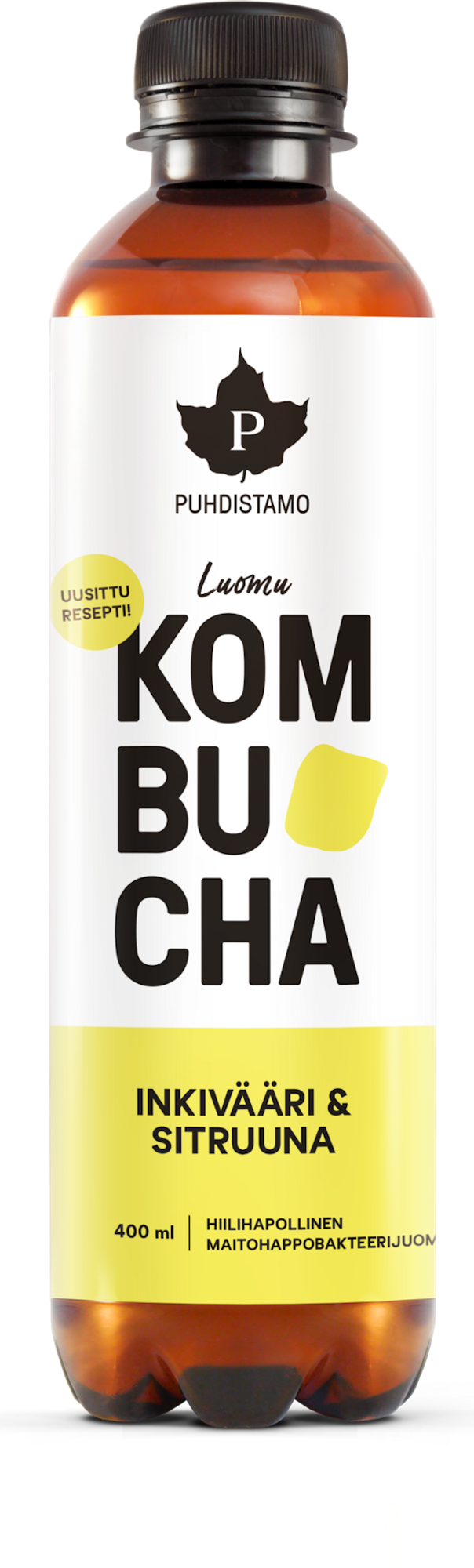 Puhdistamo Kombucha Inkivääri + Sitruuna, Luomu 400 ml