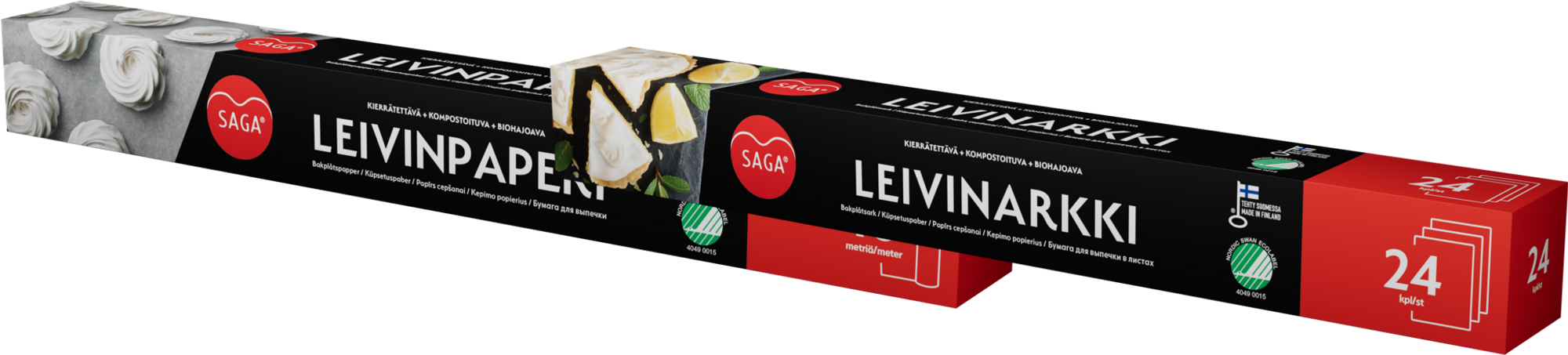 Saga leivinpaperi 10m rulla, arkki 24 kpl ja kuvioitu arkki 20 kpl