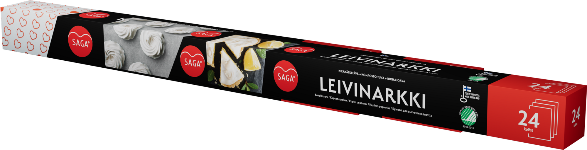 Saga leivinpaperi 10 m rulla, arkki 24 kpl, kuvioitu arkki 20 kpl