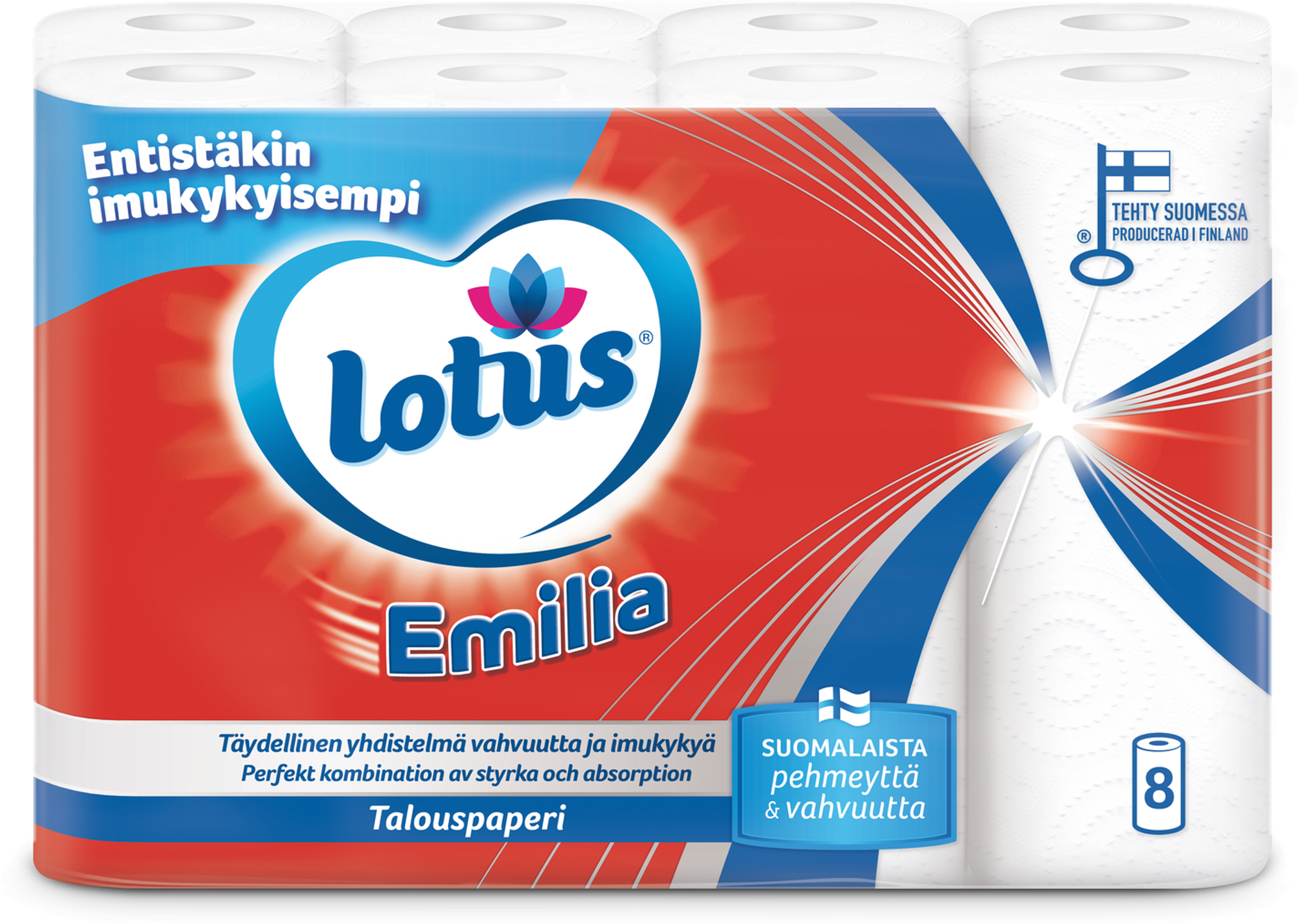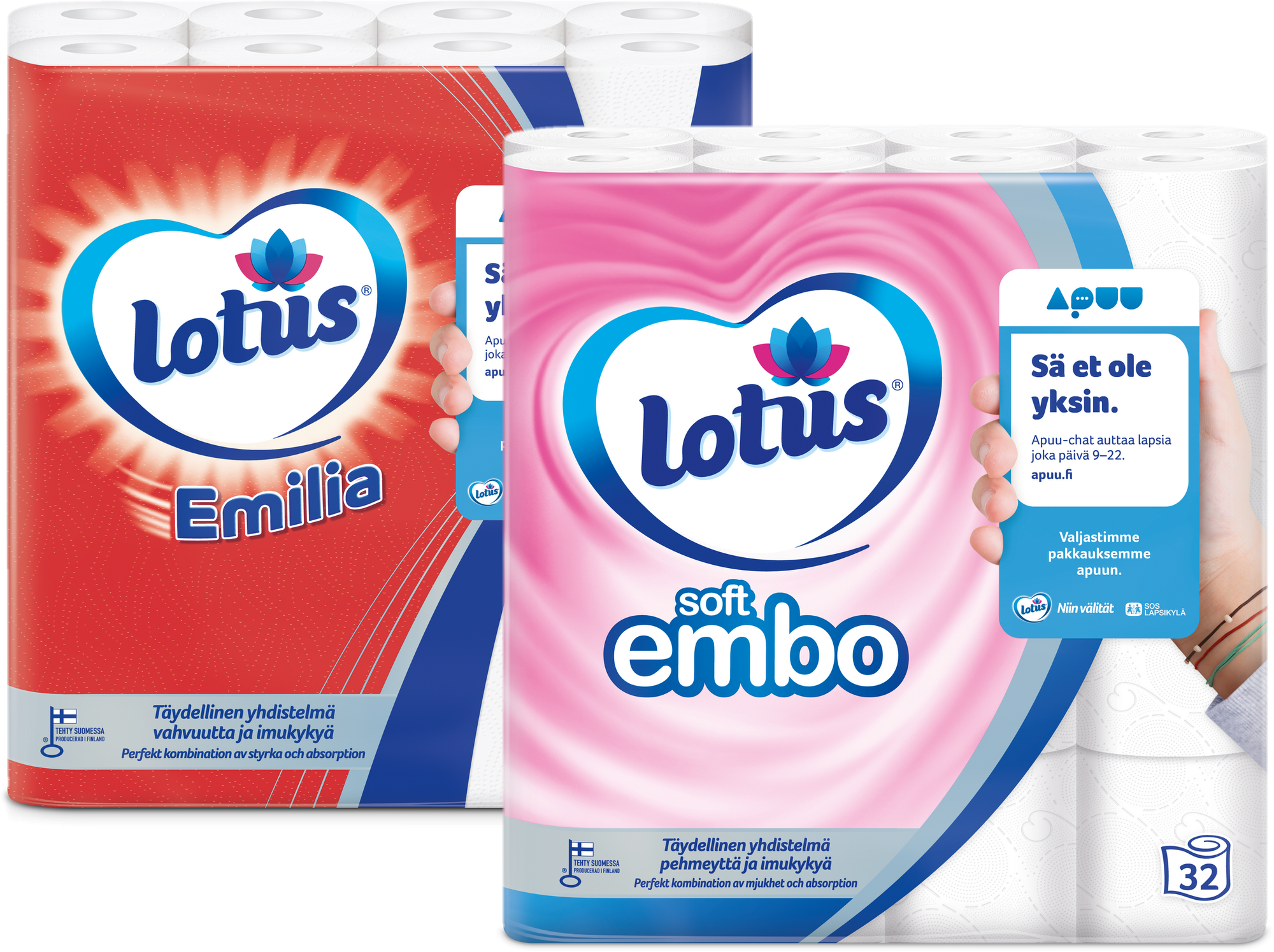 Lotus Soft Embo wc-paperi 32 rl ja Lotus Emilia talouspaperi valkoinen 16 rl