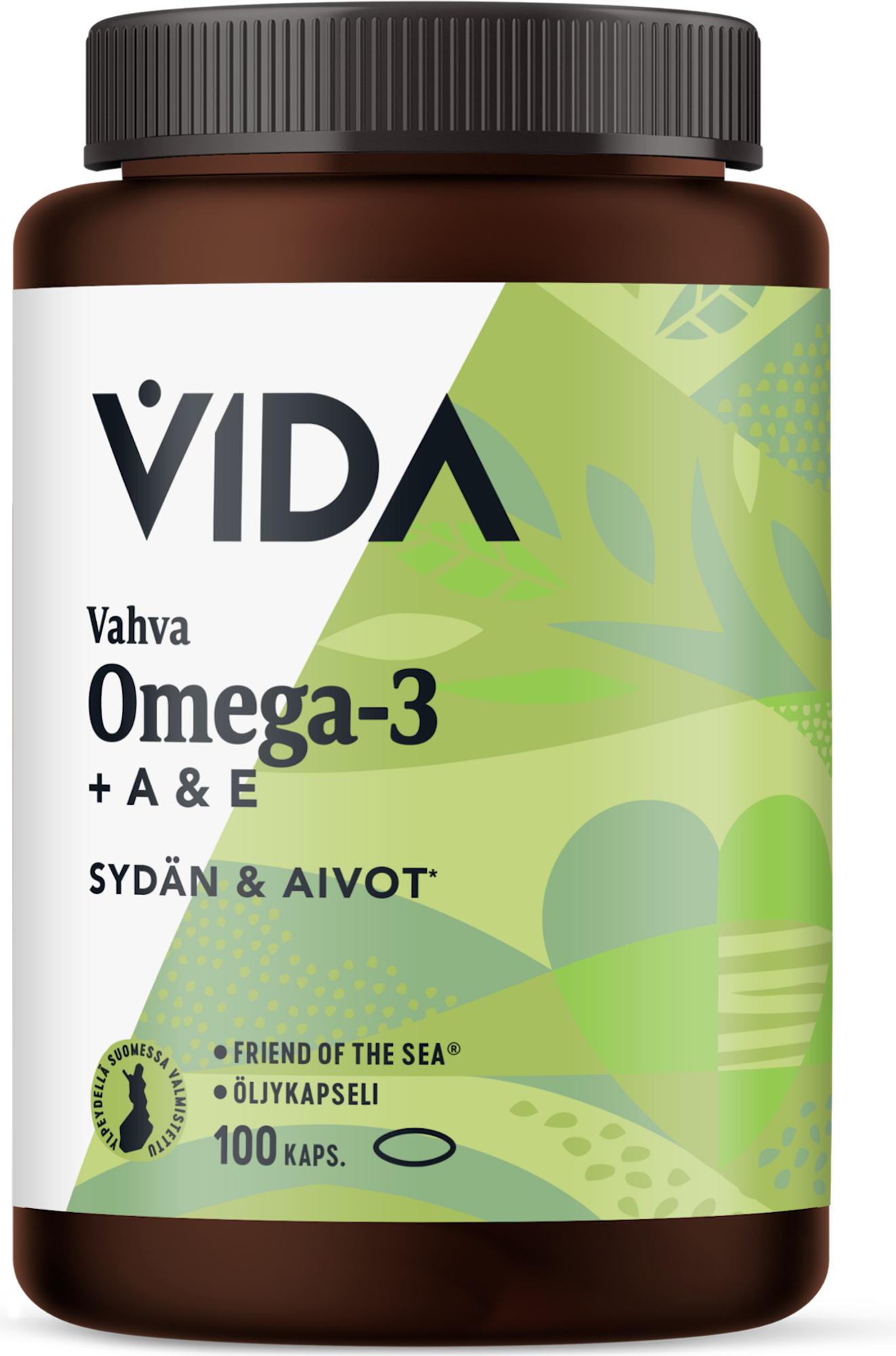 Vida kalaöljyvalmiste Vahva Omega-3 + A- ja E- vitamiinit 100 kaps/72 g