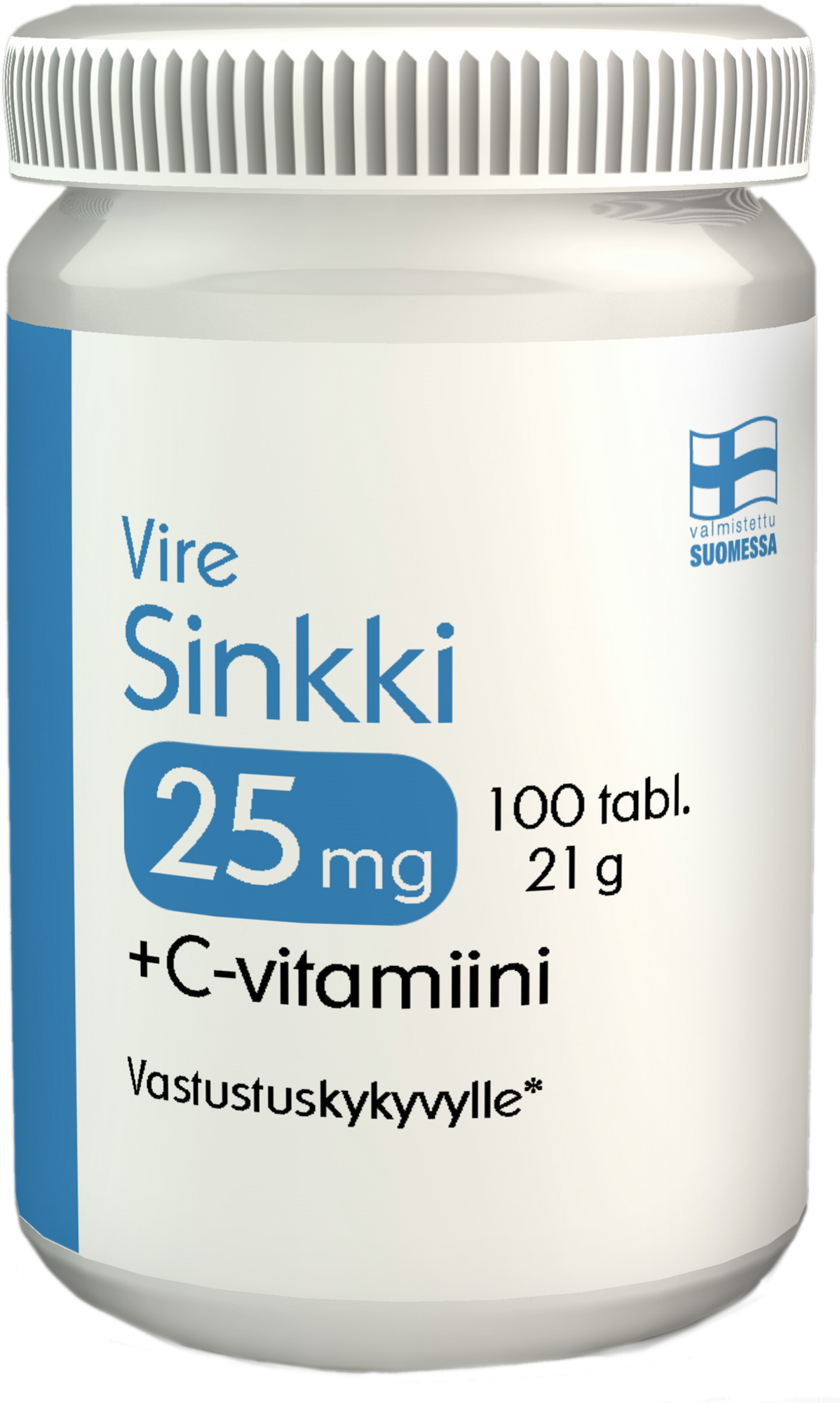 Vire Sinkki + C-vitamiinivalmiste Sinkki 25 mg + C-vitamiini 100tabl 21g
