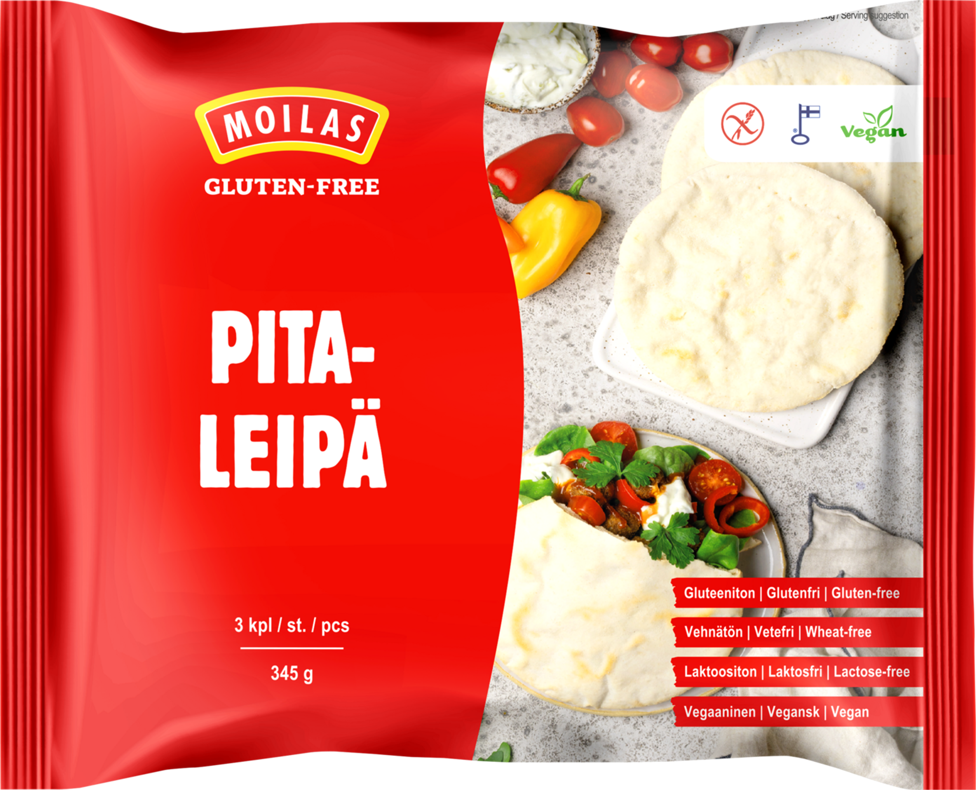 Moilas pitaleipä 3kpl 345g gluteeniton, pakaste