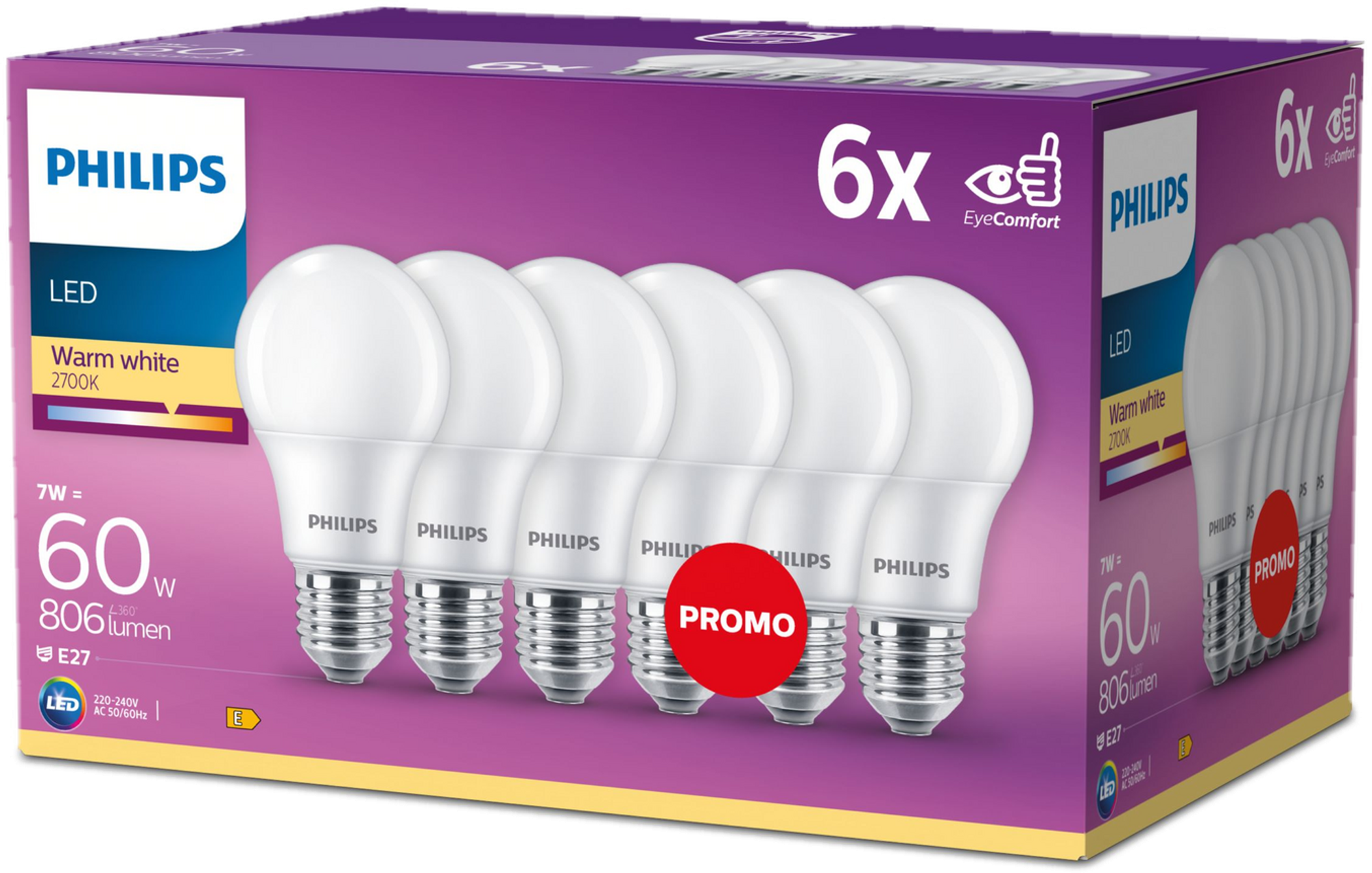 Philips LED vakio E27 806lm 2700K huurrettu 6 kpl