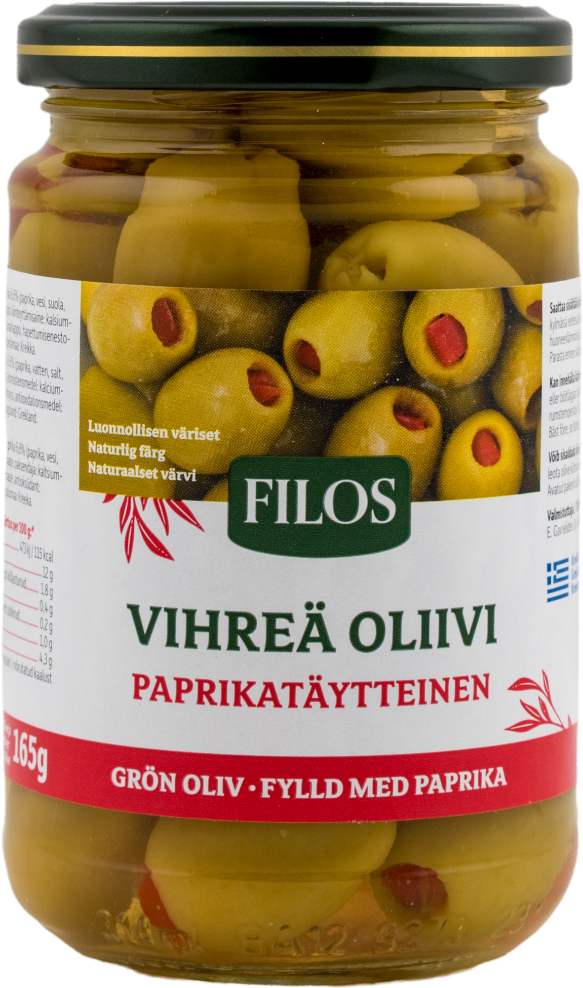 Filos vihreä kivetön paprikatäytteinen oliivi 315/165g