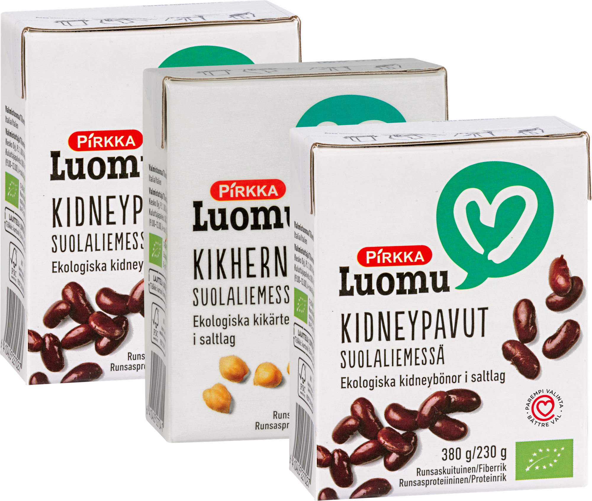 Pirkka Luomu kidneypavut ja kikherneet suolaliemessä 380/230 g