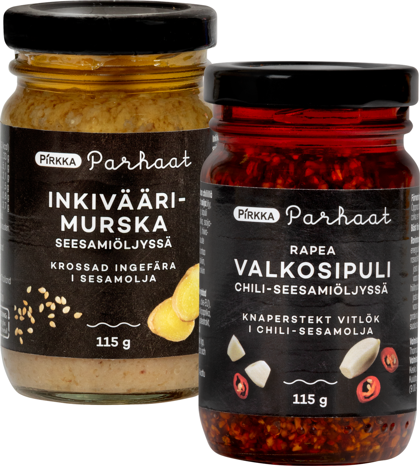 Pirkka Parhaat rapea valkosipuli chili-seesamiöljyssä ja inkiväärimurska seesamiöljyssä 115 g