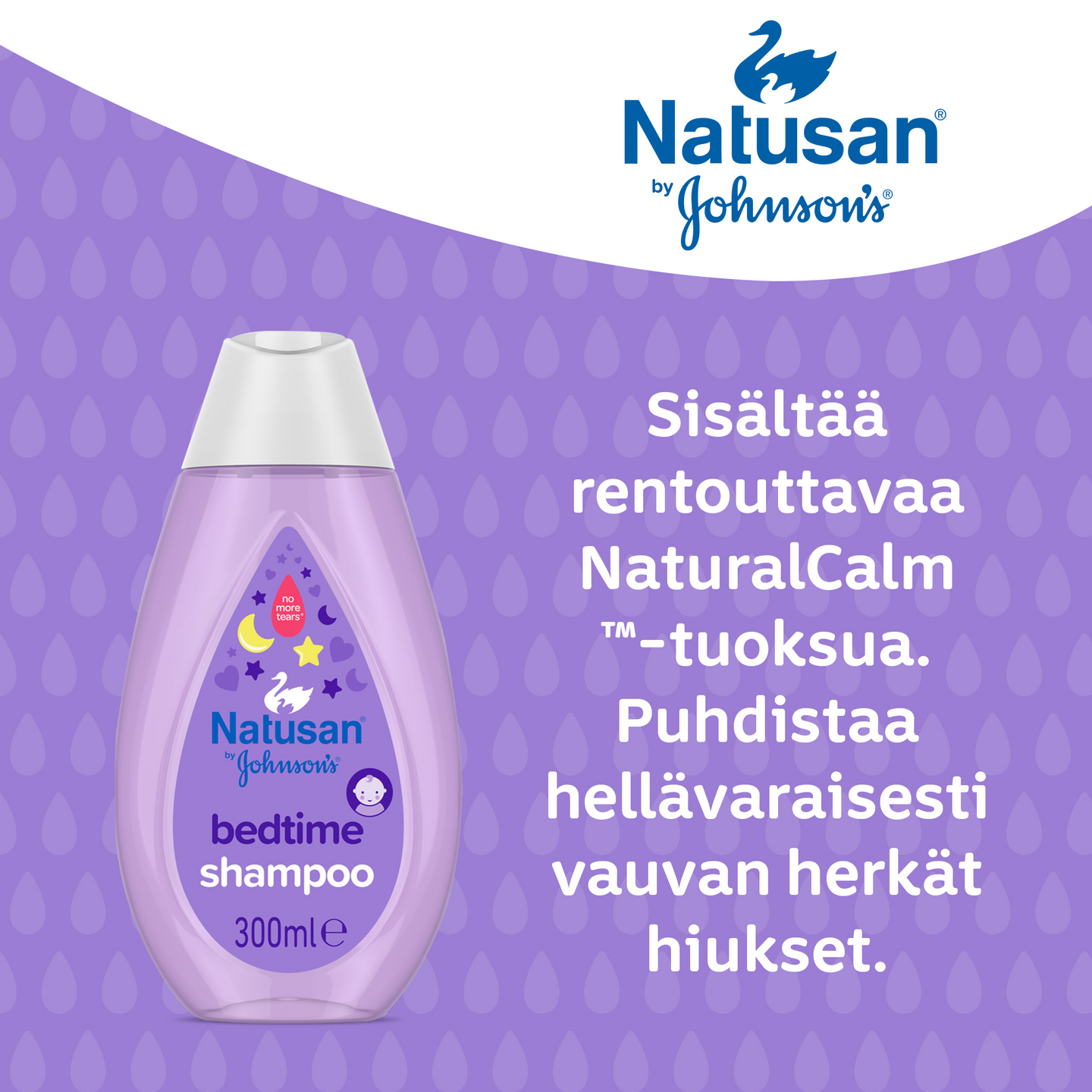 Vauvan hennot hiukset tarvitsevat erityistä huolenpitoa. Mieto vauvashampoo rentouttavalla NaturalCalm™-tuoksulla, puhdistaa hellävaraisesti hiukset ja hiuspohjan. Ihanteellinen iltarutiiniin. Täyteläinen vaahto huuhtoutuu helposti ja tekee hiuksista pehmeät ja kiiltävät. Yhtä mietoa silmille kuin puhdas vesi (NO MORE TEARS®). Kehitetty minimoimaan allergiariski. Ei sisällä sulfaatteja eikä väriaineita. Suositellaan 1-vuotiaasta alkaen.