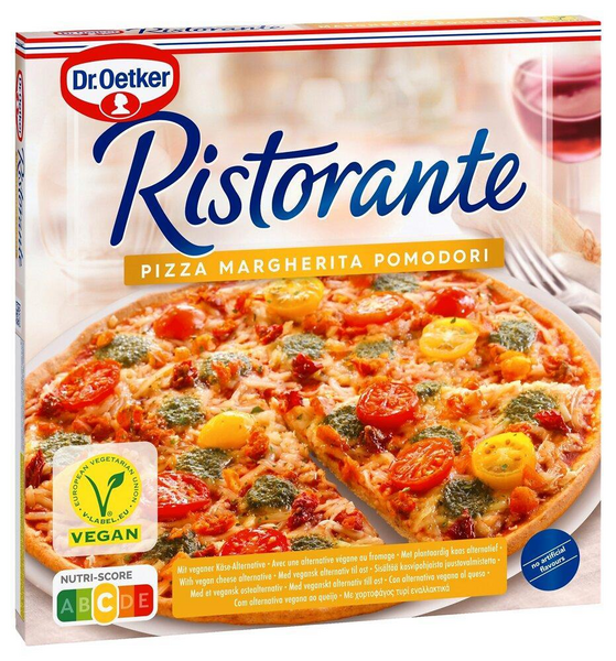 Ristorante Margherita Pomodori on vegaanipizza, jossa on rapealla ohuella pohjalla täytteenä runsaasti kirsikkatomaatteja, marinoituja tomaatteja, kookosöljypohjaista pizzaraastetta ja basilikaa. Pakaste.