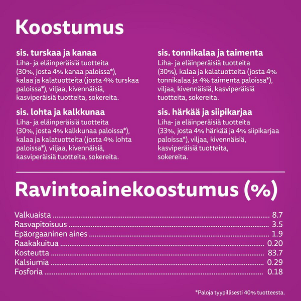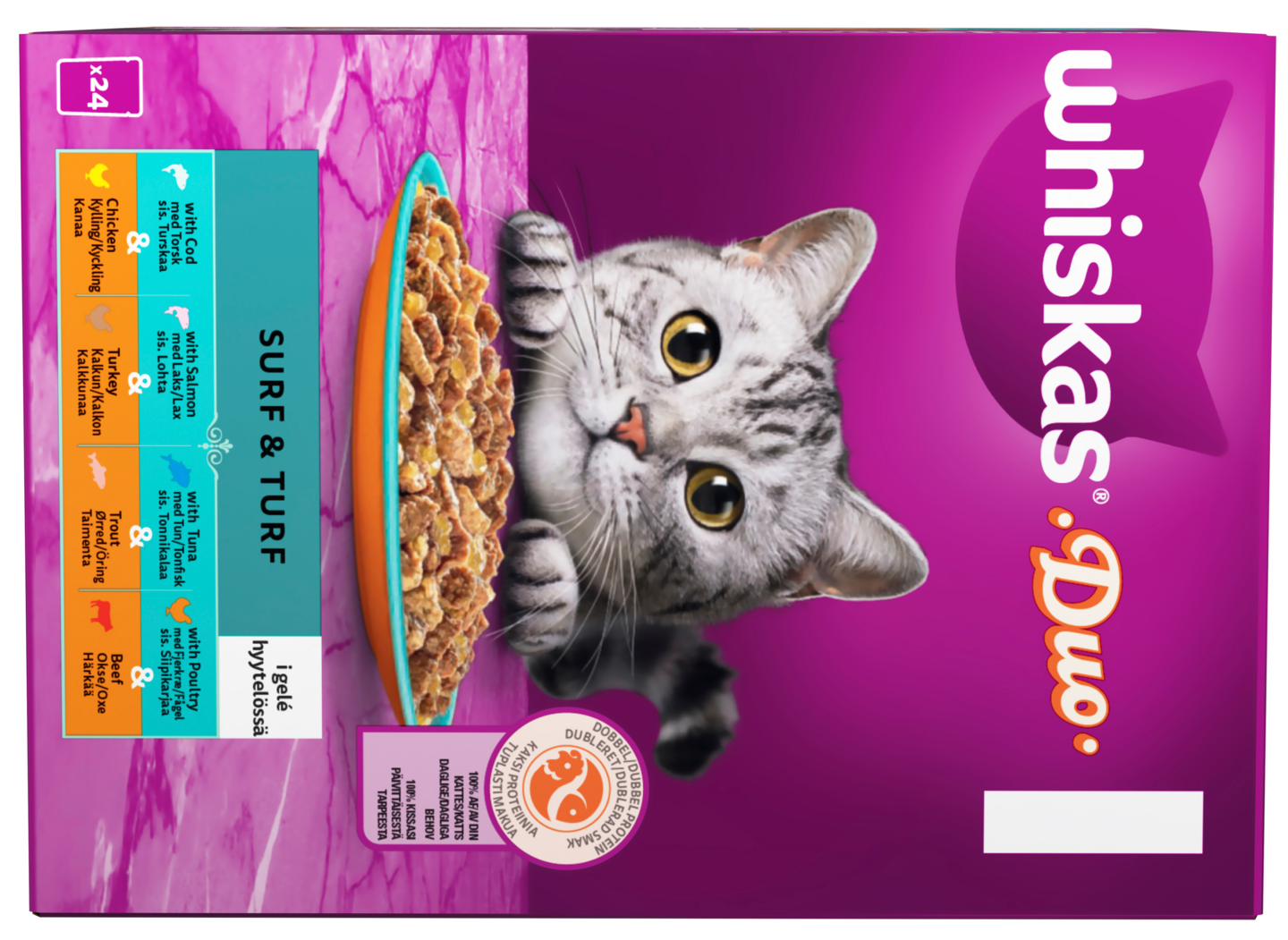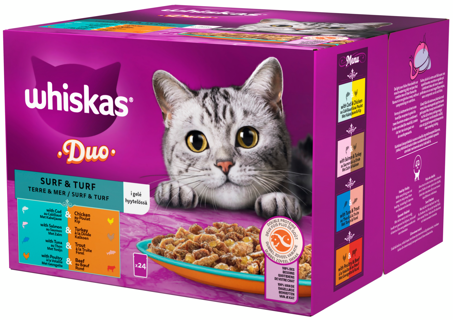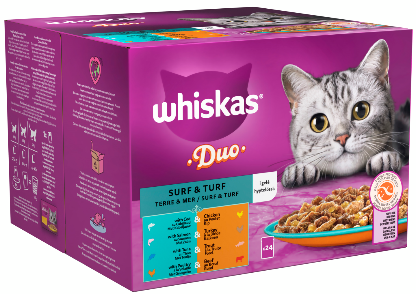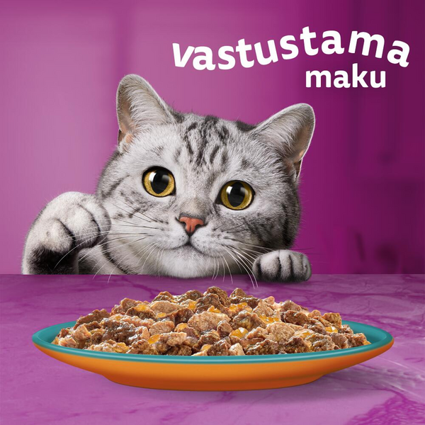 Whiskas 1+ reseptit sisältävät kaiken, mitä kissasi ravitsemuksellisesti tarvitsee pitkään ja onnelliseen elämään. Optimaalinen tasapaino vitamiineja ja kivennäisaineita. Edistää virtsateiden terveyttä. Lisätty sinkki auttaa tukemaan ihon ja turkin hyvinvointia. Tasapainoinen energiasisältö painonhallintaan.