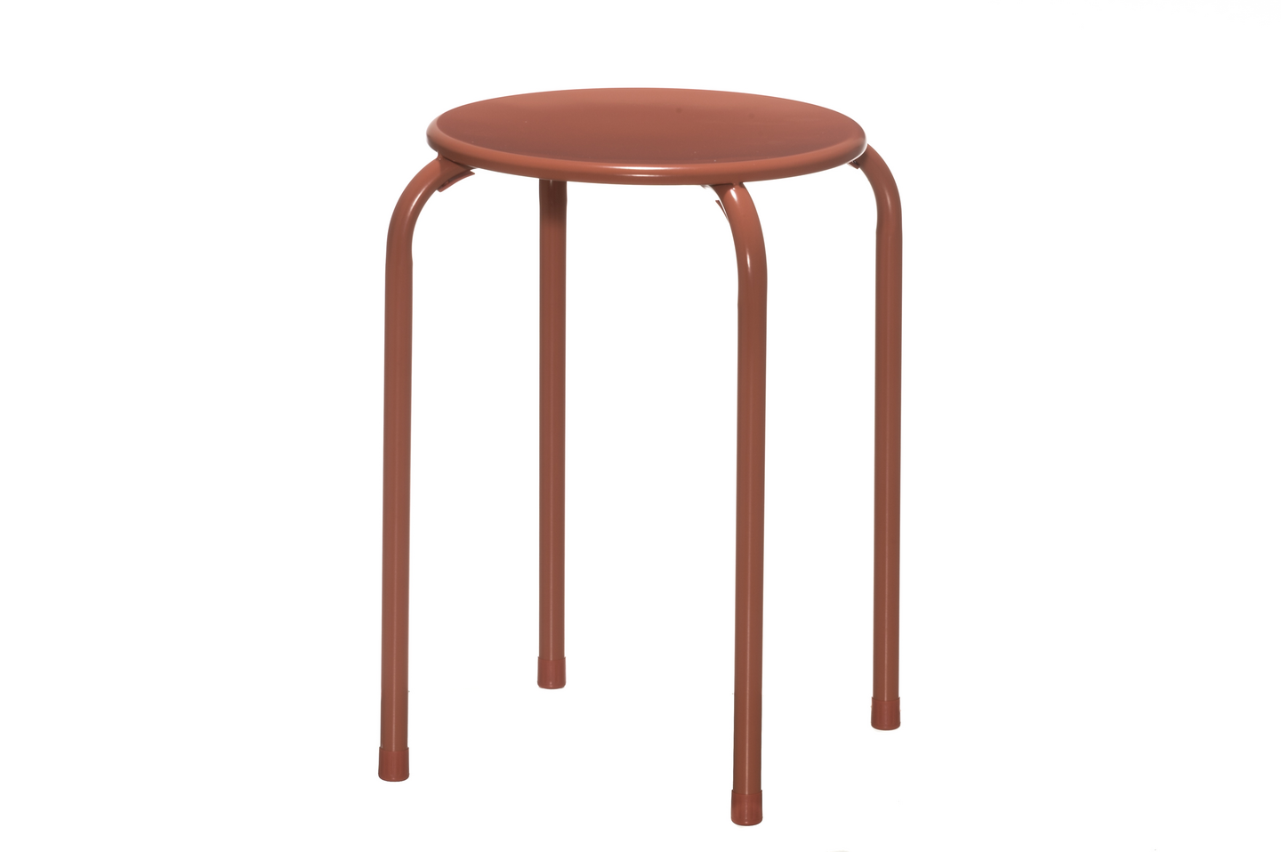 Monikäyttöinen pinottava teräsjakkara toimii myös sivupöytänä yksin tai ryhmänä.
