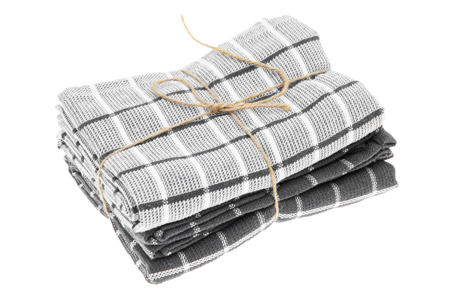 Keittiöpyyhesetti ruutukuosilla kudotusta kierrätyspuuvillasta, toisella puolella froteepinta. Setti sisältää kaksi keittiöpyyhettä: toinen tummanharmaa, toinen vaaleanharmaa. Pakattu kauniisti taiteltuna ja juuttinarulla sidottuna, erinomainen myös lahjaksi. Koko 50 x 70 cm. Pesu 40 asteessa. Materiaali: 80 % kierrätyspuuvilla, 20 % polyesteri.