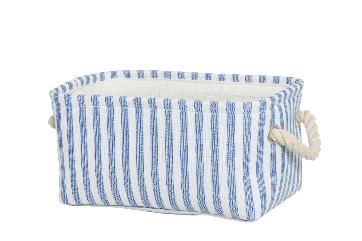 Pystyraidallinen säilytyskori, jossa on köysikahvat. Hillityn tyylikäs Seaside-säilytyskori henkii merellisyyttä, erinomainen valinta niin kotiin kuin mökillekin. Väri sini-valkoinen. Materiaalit: päällinen ja vuori: 40 % polyesteri, 30 % puuvilla, 30 % pellava, kahvat: 60 % polyesteri, 40 % puuvilla. Pintapesu kostealla liinalla.