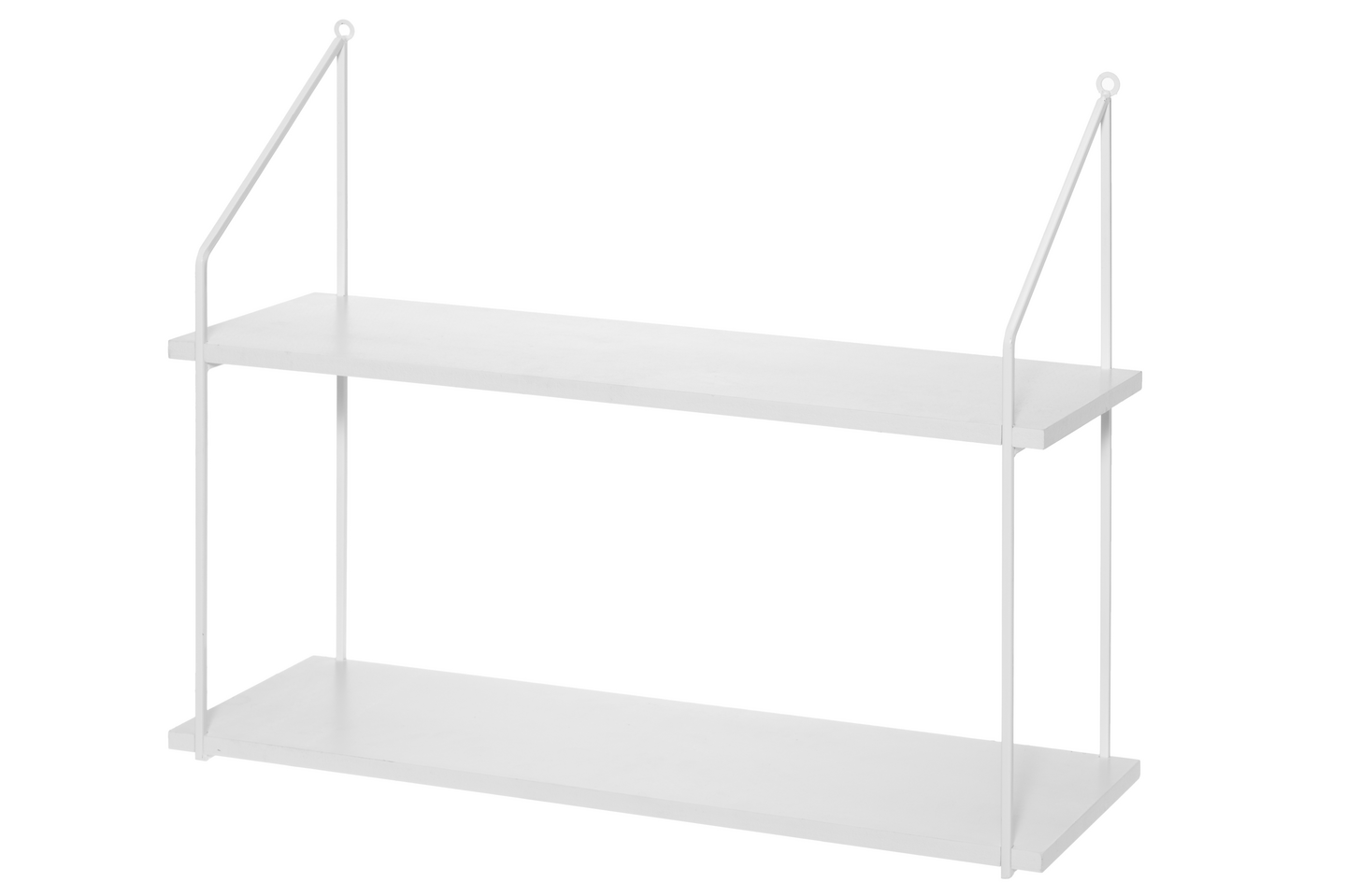 Koottava. Hylly kiinnitetään kahdella ruuvilla, ruuvit ei sisälly. Max. kuormitus / hylly 2 kg, yhteensä 4 kg. Materiaali: metalli, MDF.