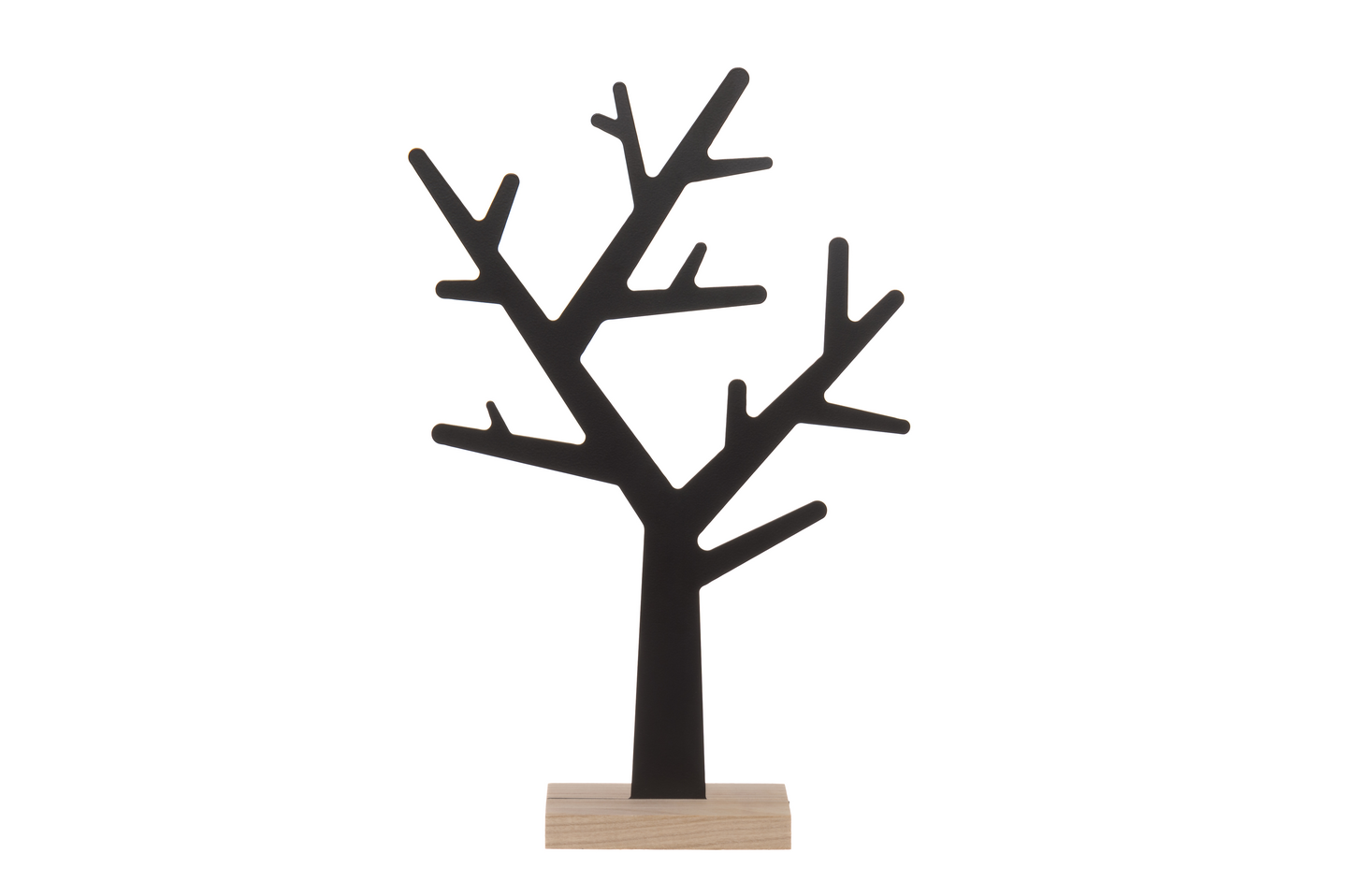 Puun muotoinen metallinen koruteline sopii koruille, kelloille tai avaimille. Telineessä on musta metallinen puu sekä jalusta keisarinpuuta.