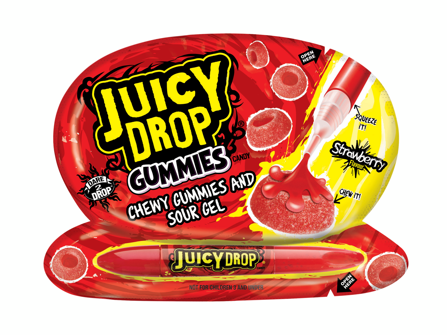 Bazooka Candy Brandsin makeiset ovat erikoismakeisia, joilla on helppo ilahduttaa niin omaa kuin ystävänkin päivää. Juicy Drop Gummies sisältävät maukkaita viinikumeja ja kirpeän makuista geeliä.