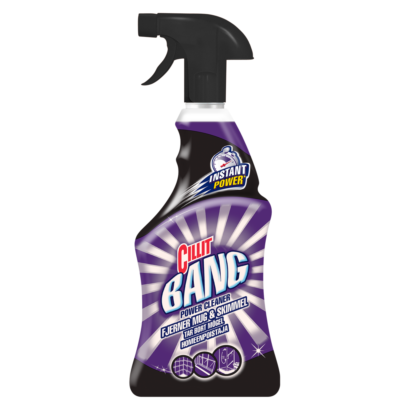 Älä anna homeelle mahdollisuutta juurtua kotiisi – poista se Cillit Bangin avulla jo tänään! Täydellinen koostumus hometta vastaan sisältää sekä puhdistavia että desinfioivia ainesosia. Puhdistavat ainesosat poistavat lian vaivatta, ja desinfioivat torjuvat hometta helposti ja nopeasti. Käytä Cillit Bang Homeenpoistajaa kosteille ja homeen peittämille pinnoille – saat puhtaan ja terveellisen kodin. BANG – ja lika on poissa! Poistaa tehokkaasti: Homeet ja härmät, lian, bakteerit ja mikrobit * Verrattuna Cillit Bang – Farewell to Limescale -tuotteeseen 10 minuutin käytön jälkeen