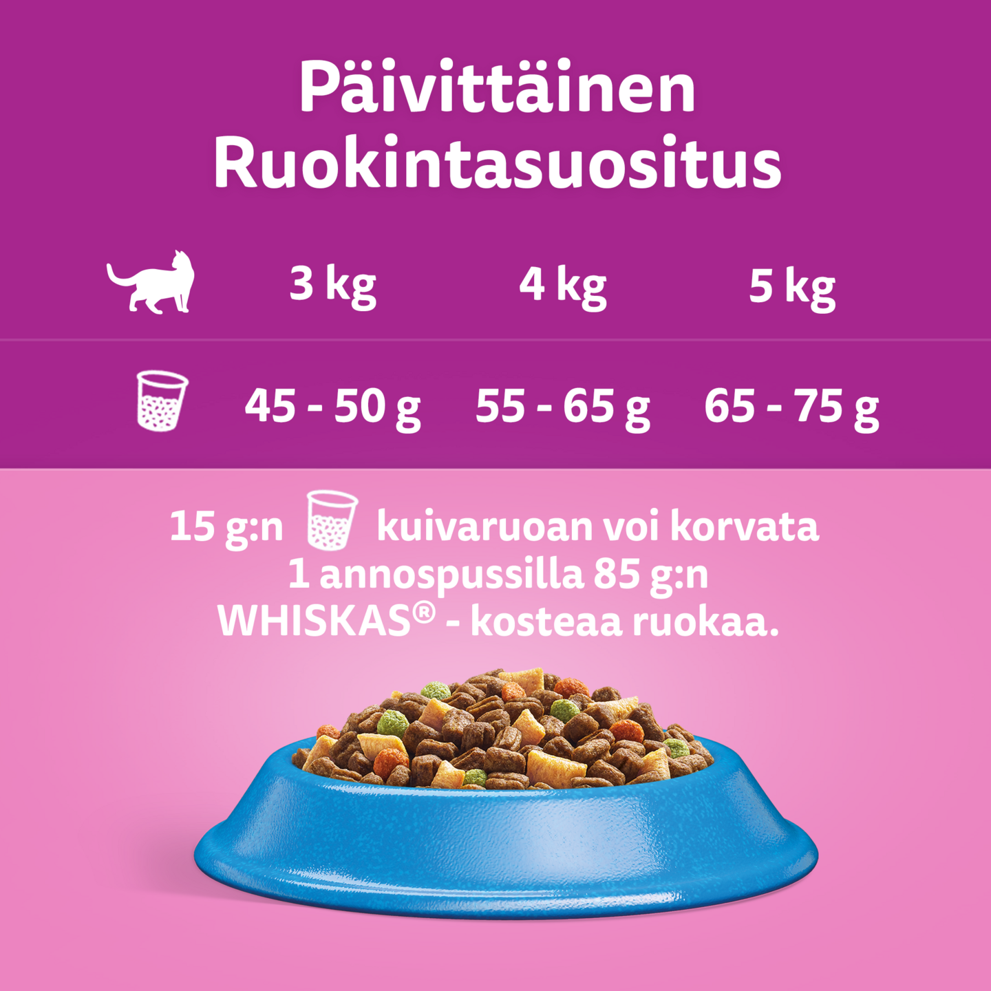 Whiskas® -kissanruoat ovat täysipainoisia ja ravitsevia, ja ne auttavat sinua tarjoamaan kissallesi parasta mahdollista huolenpitoa.