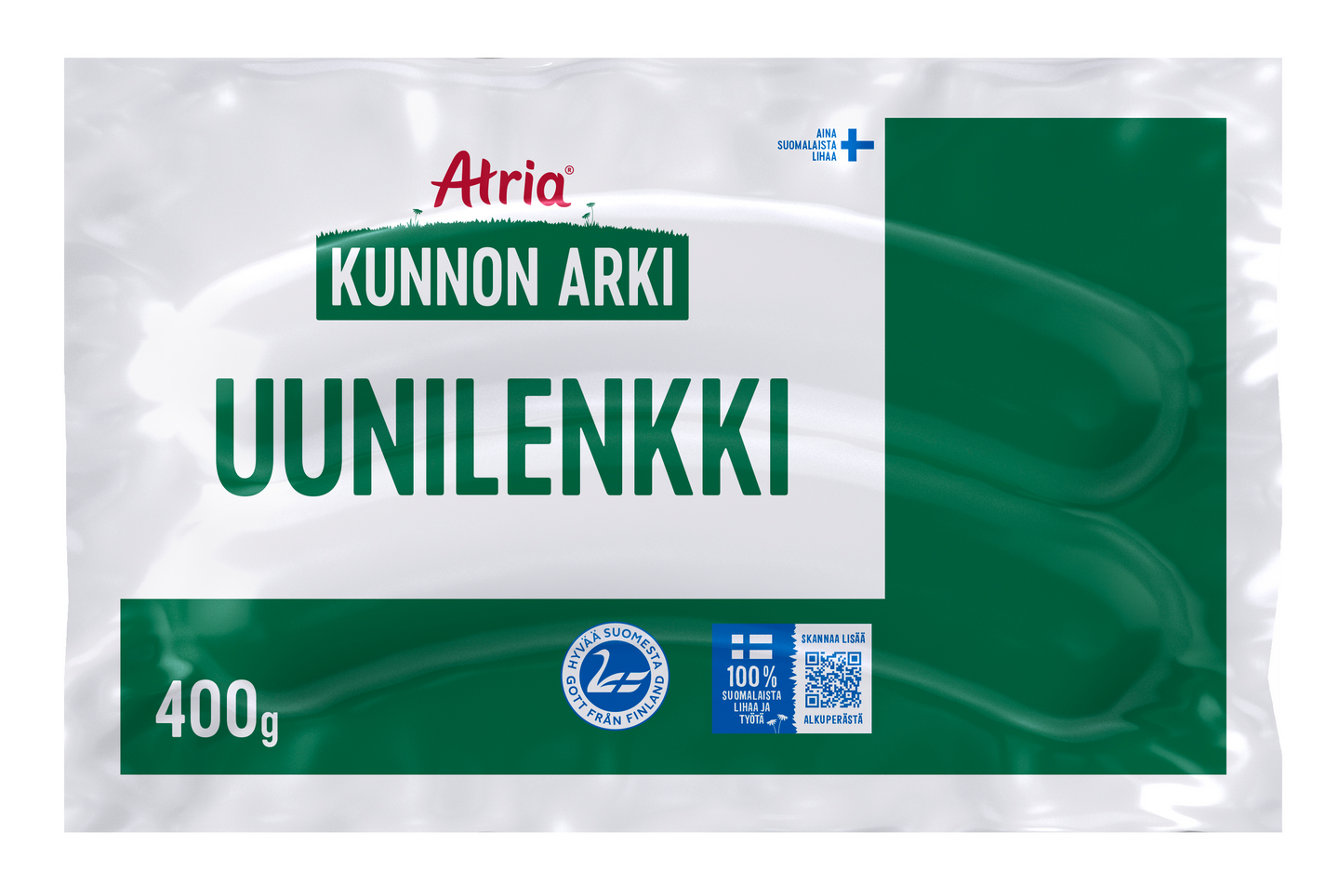 Atria Kunnon Arki Uunilenkki on nimensä mukaisesti kunnon ruokaa toimivaan arkeen. Uunimakkara toimii loistavasti perinteisen muusin kanssa ja vaihtelua puolestaan saat paahtamalla seuraksi kauden kasviksia.