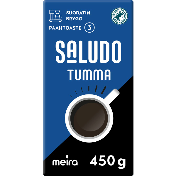 Saludo on suomalaiseen makuun kehitetty runsasarominen, tumma paahtoinen, kunnon kahvi. Sen pehmeä maku syntyy kahviseokseen valituista aromikkaista ja pehmeistä Etelä- ja Keski-Amerikan sekä Itä-Afrikan kahvilaaduista, jotka omalta osaltaan tasapainottavat Saludo-kahvimme makua. Kahvi on Rainforest Alliance -sertifioitua.
