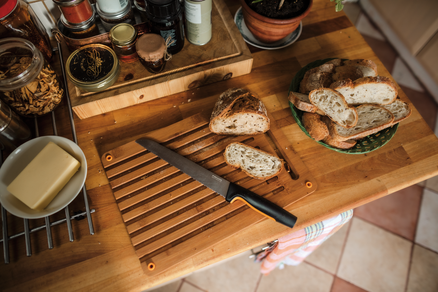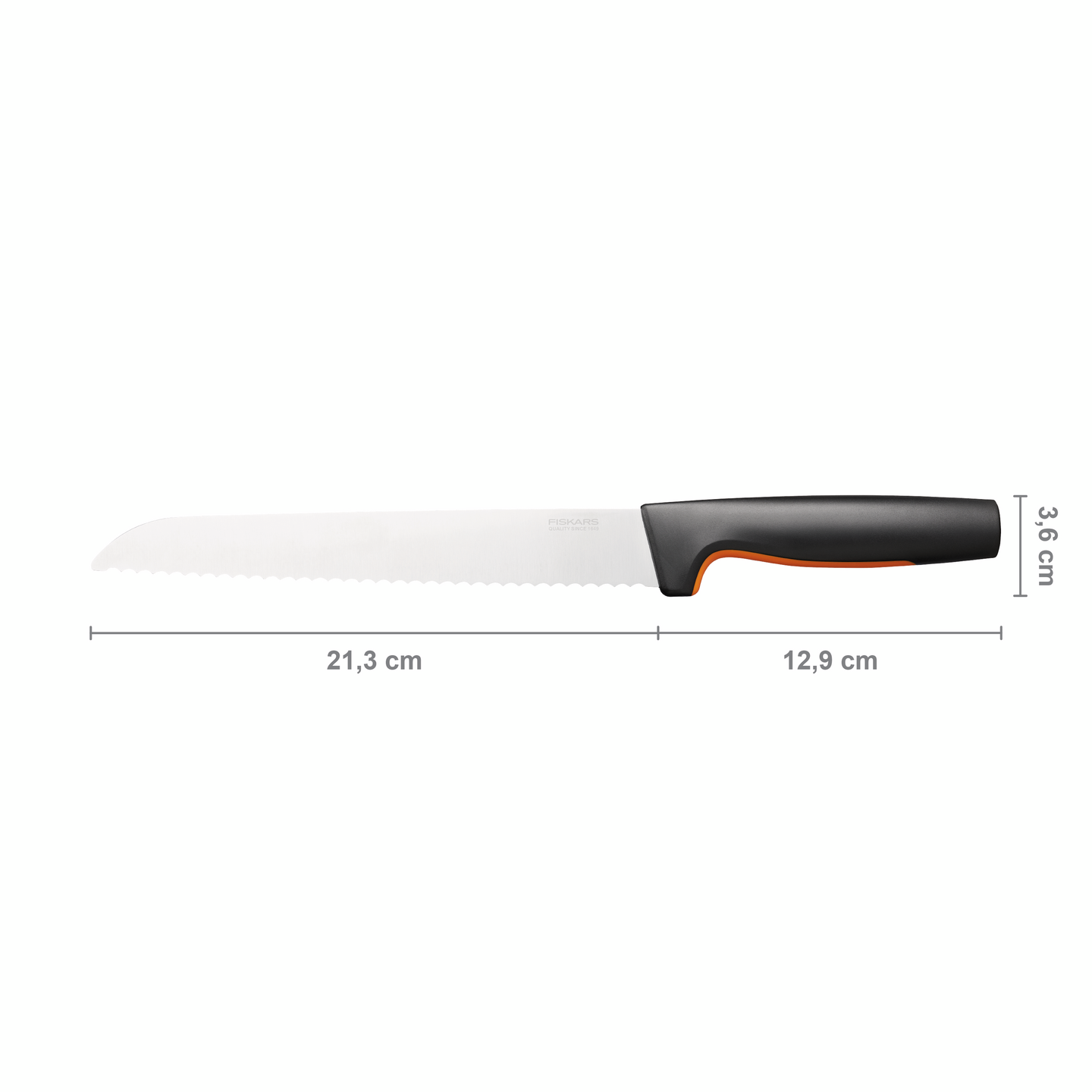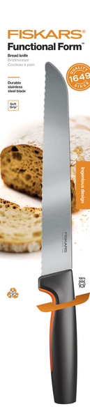 Functional Form -leipäveitsessä on pitkä, sahalaitainen terä, joka on valmistettu ruostumattomasta japanilaisesta teräksestä. Soveltuu erinomaisetsi kovakuoristen leipien leikkaamiseen. Veitsen ergonomisessa kahvassa on SoftGrip-pinnoite sormille sekä sormisuoja, joka lisää mukavuutta ja turvallisuutta käytön aikana. Muiden Functional Form -sarjan veitsien tapaan myös tämä leipäveitsi on tiskikoneenkestävä. Suunniteltu Suomessa.
