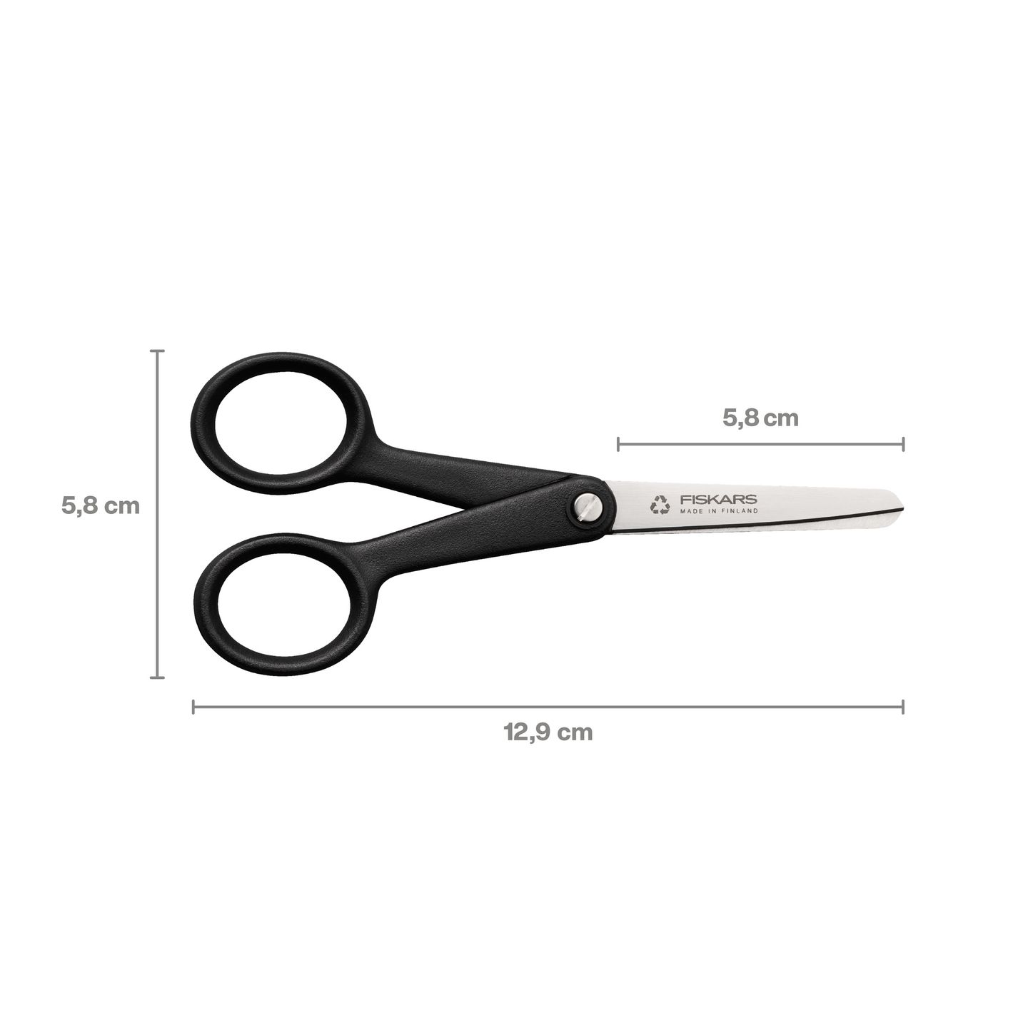 Fiskars Functional Form ReNew -askartelusakset soveltuvat sekä lapsille että aikuisille, ja ne on valmistettu vähintään 70-prosenttisesti kierrätysmateriaaleista. Lyhyissä, korkealaatuisissa ruostumattomasta teräksestä valmistetuissa terissä on tylpät kärjet, joiden ansiosta saksia voi säilyttää turvallisesti taskussa ja kaikkialla kotona. Kierrätysmuovin ja lasikuidun yhdistelmästä valmistettu ergonominen kädensija tarjoaa ainutlaatuisen käyttömukavuuden ja hyvän otteen. Sakset on valmistettu ympäristösertifioidulla Suomen tehtaallamme, ja ne on viimeistelty käsin. Sakset sopivat oikea- ja vasenkätisille. Muiden Fiskars-tuotteiden tapaan sakset on suunniteltu kestämään aikaa ja käyttöä.