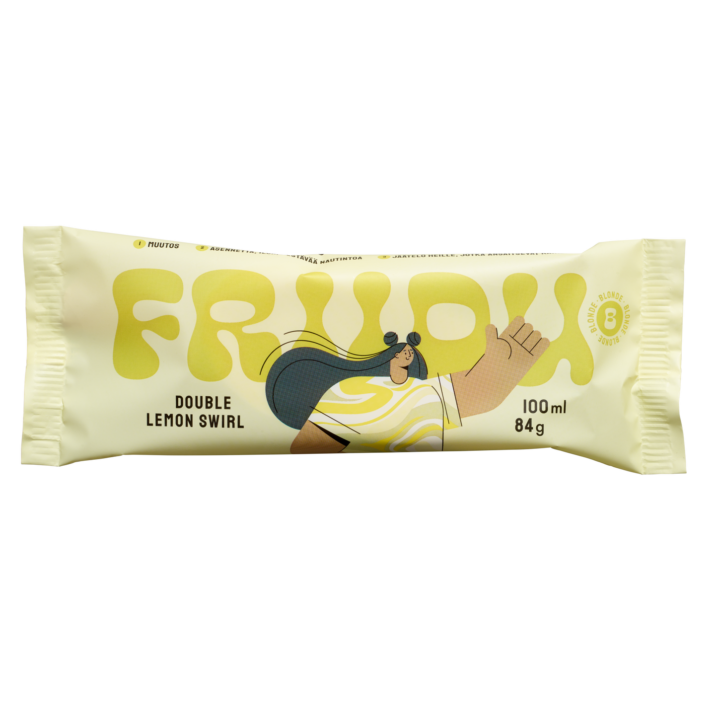 Blondi Friidu valloittaa! Kermainen sitruunajäätelö ja pirskahtelevan raikas sitruunasorbetti saivat ylleen ihanan vaalean kuorrutteen. Ja mikä parasta: kaikki Friidu-jäätelöt ovat täysin kasvipohjaisia.