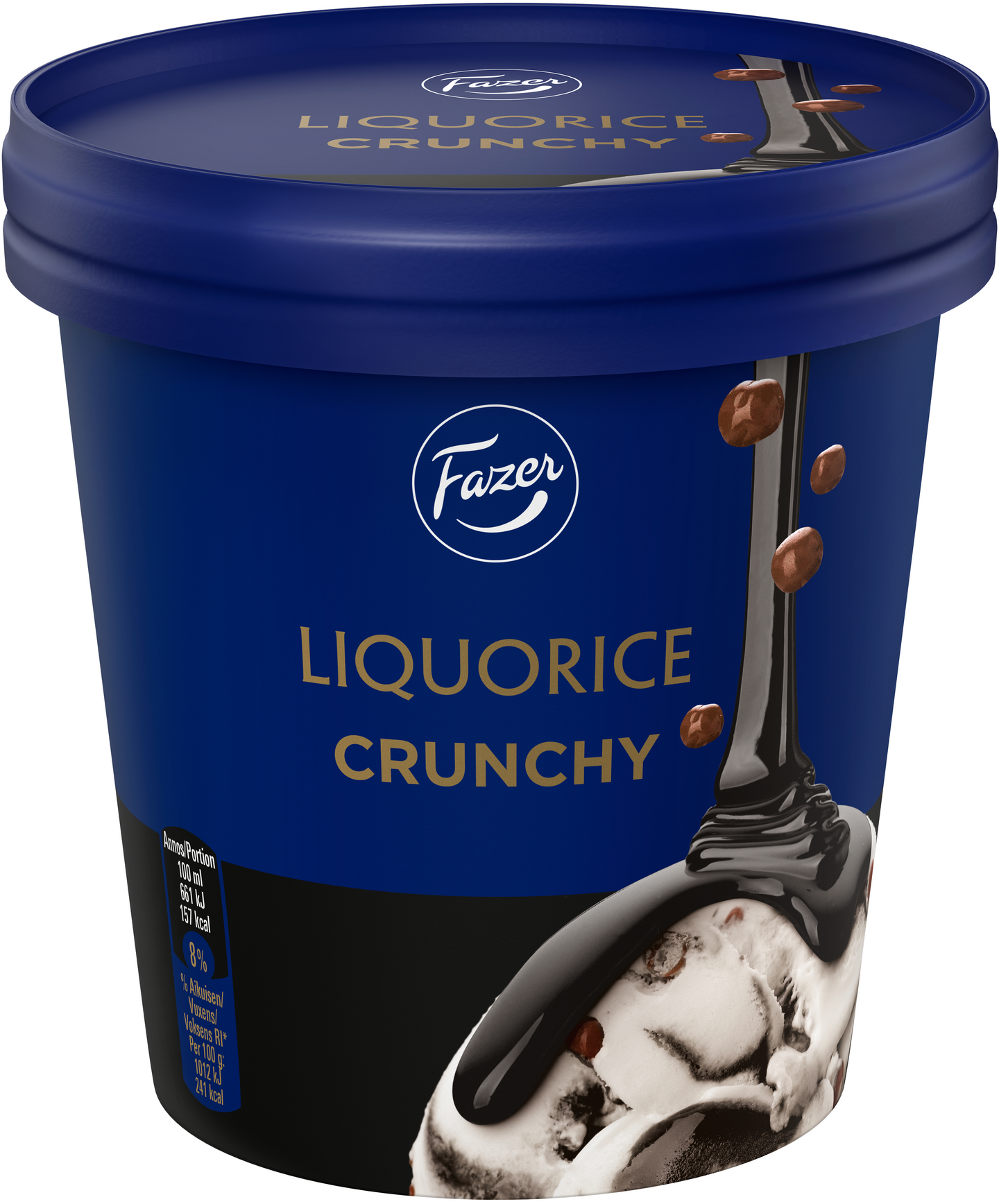 Fazer Dumle Liquorice jäätelöpurkissa vaniljakermajäätelön sisällä on suussa sulava lakritsitoffeesydän. Herkulliset suklaanmakuiset palat täydentävät huikean kokonaisuuden. Fazer-jäätelöt - Maut, joita jo rakastat. Fazer-jäätelöiden tuoteperhe koostuu suosituista Fazerin makeisbrändeistä. Fazer-jäätelöt valmistetaan suomalaisesta kermasta, Turengin jäätelötehtaalla.