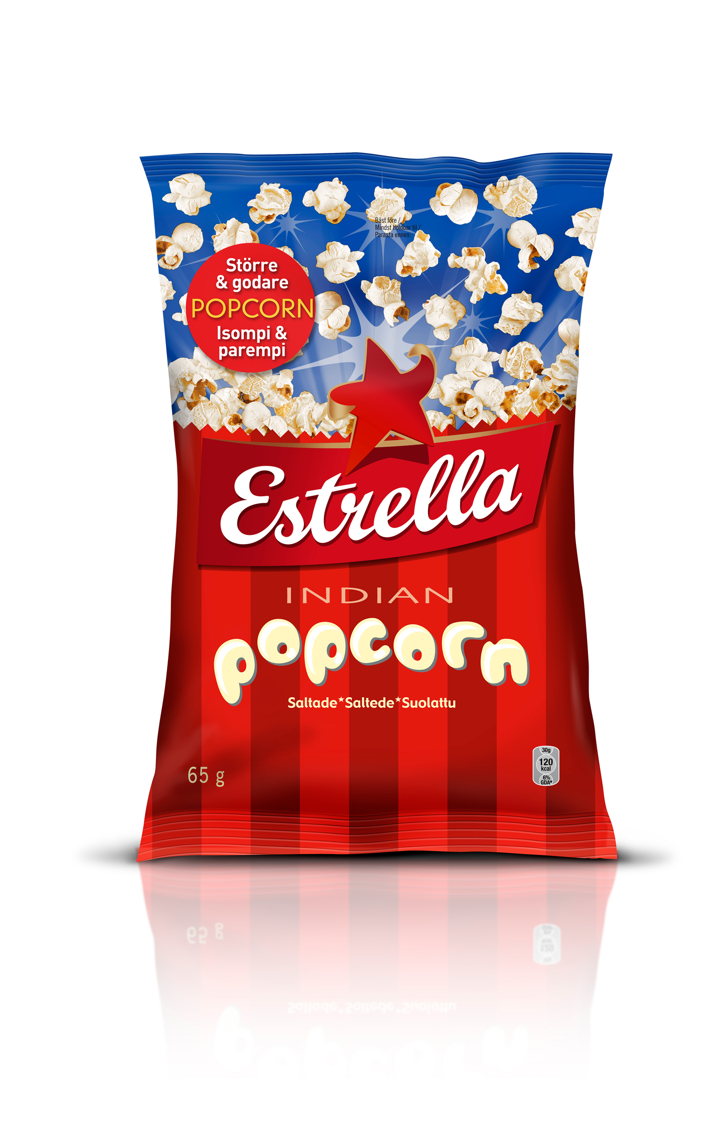 Popattuja ja suolalla maustettuja popcorneja valmiina viihdyttämään sinua sohvalla leffahetken parissa.