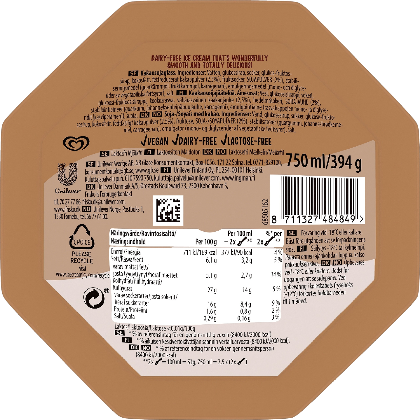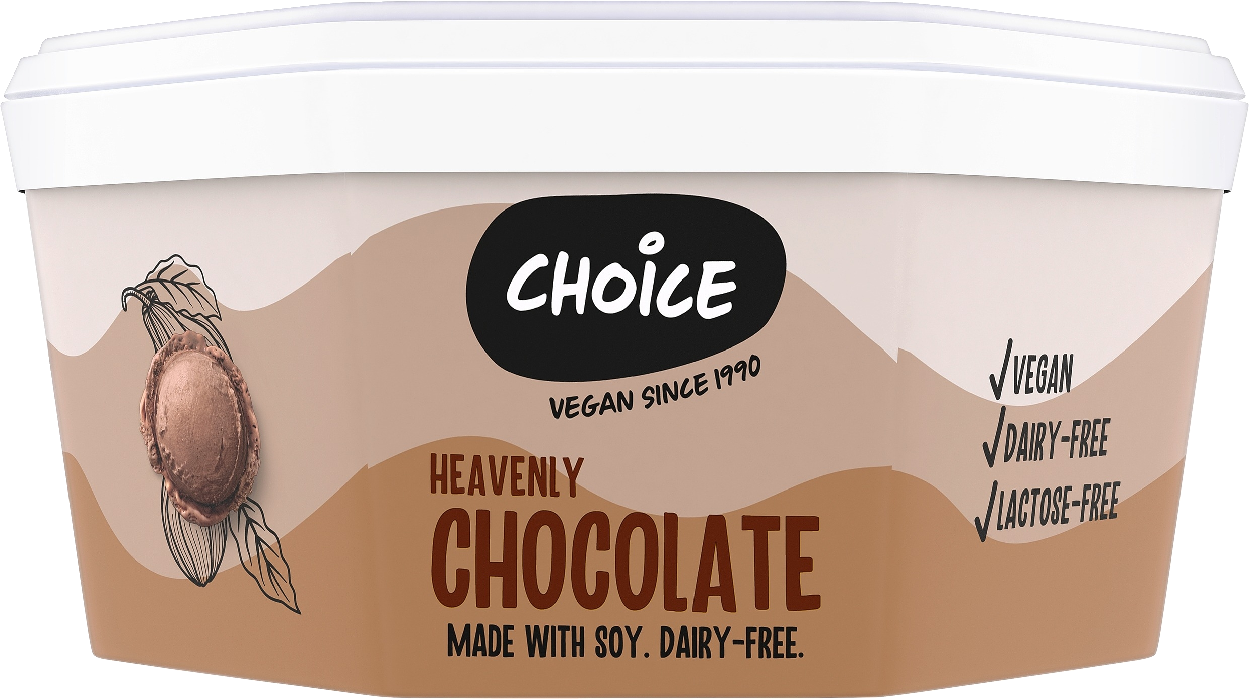 Choice Heavenly Chocolate on soijamaidosta valmistettu, herkullinen maidoton suklaajäätelö. Nautiskele hyvällä omallatunnolla!