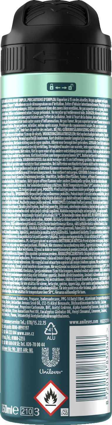 Rexona Men 72h Advanced Protection Ultra Fresh Antiperspirant Spray Deodorant antaa 72 tunnin nonstop-suojan hikoilua ja hajua vastaan, jotta olet aina valmis pysymään liikkeessä. Alkoholiton* koostumus pitää kainalot puhtaina, raikkaina ja kuivina koko päivän ilman ihon ärsytystä. Tämä miesten antiperspiranttideodorantti hyödyntää Rexonan patentoitua Body Heat Activated -teknologiaa, joka tekee ylimääräistä työtä, kun lämpötila nousee. Se muodostaa vahvan suojaavan esteen kehon lämpötilan kohotessa ja antaa sinulle vertaansa vailla olevan itsevarmuuden raikkaalla, hedelmäisellä tuoksulla. Olitpa kannustamassa suosikkijoukkuettasi, aktiivinen ulkona tai vain tapaamassa ystäviä, tämä deodoranttisuihke tarjoaa kaiken tarvitsemasi tuen. Kun työskentelet kovaa, Rexona työskentelee vielä kovemmin. Näin käytät: Ravista hyvin ja suihkuta lyhyinä suihkauksina hyvin ilmastoidussa tilassa pitäen purkkia 15 cm:n päässä kainalosta. Vältä kosketusta silmiin ja vaurioituneeseen ihoon. Antiperspiranttipurkkimme on valmistettu loputtomasti kierrätettävästä alumiinista – muista kierrättää. Liikutaan yhdessä kohti kestävämpää tulevaisuutta. Rexonalla haluamme inspiroida kaikkia liikkumaan enemmän ja pääsemään pidemmälle. Olemme täällä tukemassa matkaasi antiperspirantilla, joka varmistaa, että olet aina suojattu ja valmis siihen, mitä päivä tuo tullessaan. Rexona – se ei petä sinua. *etyylialkoholi