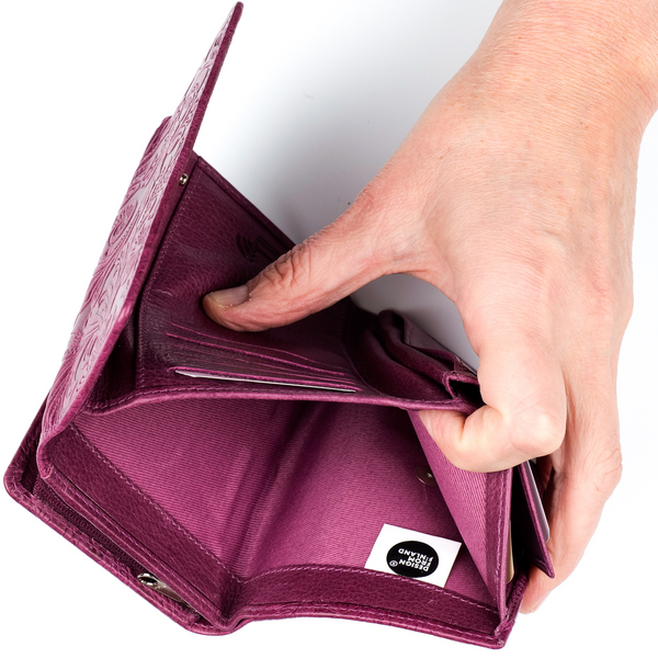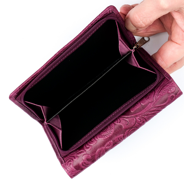 Monipuolinen nahkalompakko upein kuviopainatuksin. Neppariläpän takana jopa 14 korttipaikkaa, iso ikkunallinen korttipaikka esimerkiksi ajokortille sekä useita muita välejä. Taustalla seteliväli ja lompakon takapuolella on vetoketjullinen kaksiosainen til