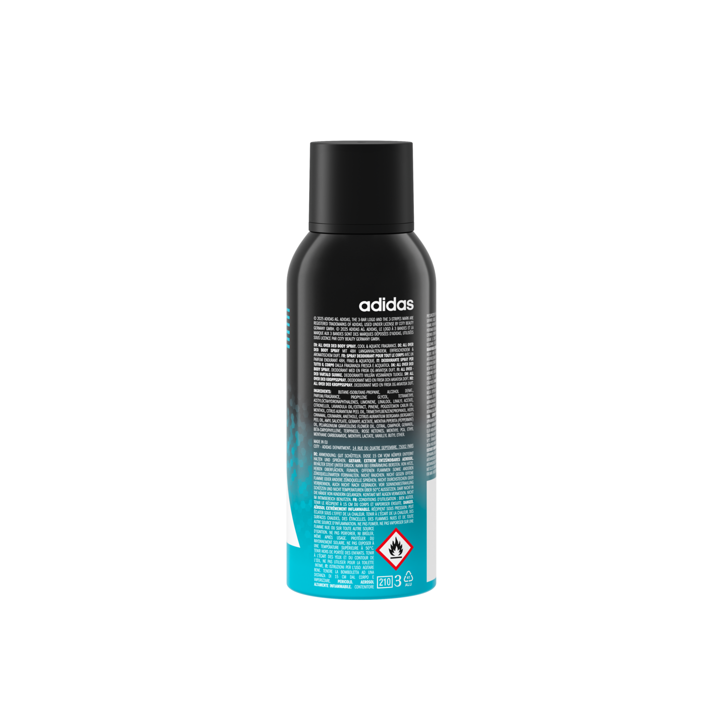 Adidas Ice Dive Deodorant Body Spray -vartalosuihkeessa on 48 tuntia kestävä tuoksu ja vegaaninen koostumus. Kevyt alumiinipakkaus