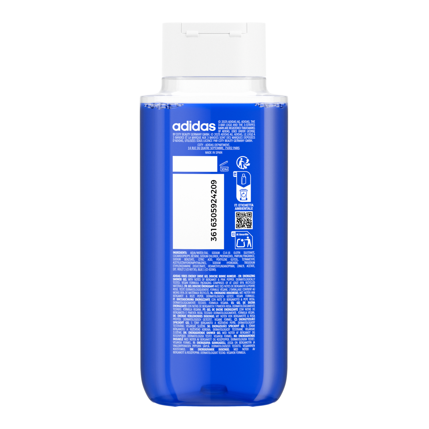 Adidas Vibes Energy Drive -suihkugeeli saa olosi tuntumaan energiseltä bergamotin ja mustapippurin tuoksun avulla.