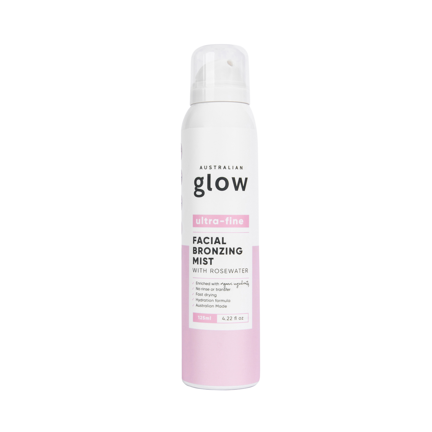 SPRAY N GLOW. – MIST Jos haluat nauttia elämästä kauniin ruskettuneena – tämä tuote on sinulle. Mikäli haaveilet kauniista glowsta helposti, tämä ultrakosteuttava itseruskettava suihke on täydellinen valinta. Tarkoin harkitut raaka-aineet luovat ihollesi kauniin ruskettuneen hehkun samalla sitä hoitaen. Tuote on helppokäyttöinen ja sen väritön koostumus ei tahraa tekstiilejä. Tuote antaa luonnollisen päivettyneen lopputuloksen, mutta mikäli tavoittelet intensiivisempää rusketustulosta, voit toistaa käsittelyn seuraavana päivänä. Tuotteen koostumus sisältää ihoa hoitavia ja rauhoittavia ainesosia kuten jojobaa ja ruusuvettä. • Kevyt väritön koostumus sisältää ruusuvettä • Sisältää luonnollisia ja luomulaatuisia raaka-aineita • Nopeasti kuivuva ja helppo levittää • Kaunis ja tasainen rusketus ilman oransseja vivahteita