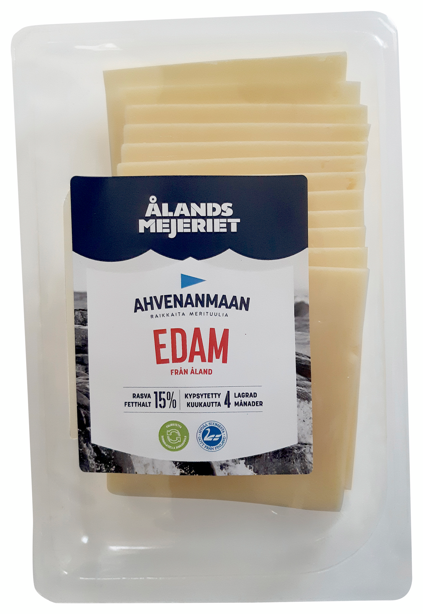 Ahvenanmaan valmiit viipaleet, valikoimamme kevyin juusto on Edam 15, mikäli toivot kevyempää vaihtoehtoa juustolle mutta et halua tinkiä mausta. Juusto sisältää vain 15% rasvaa mutta maussa on luonnetta ja aitoa makua ahvenanmaalaisesta maidosta. Laktoositon