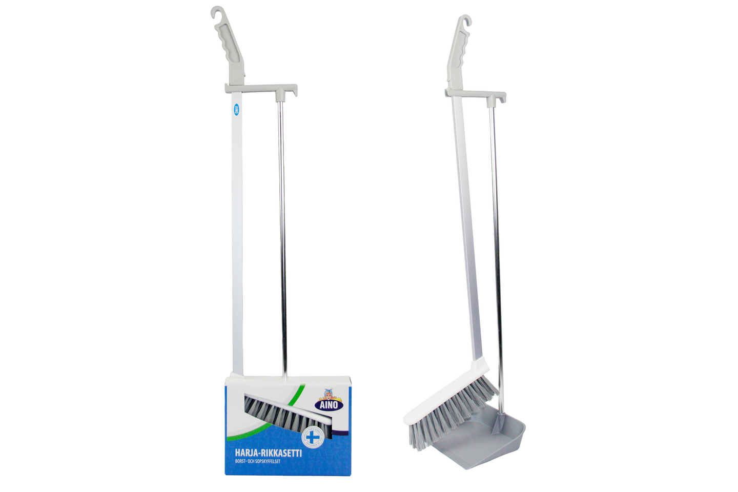 Pakkaus sisältää lakaisuharjan ja varrellisen rikkalapion.