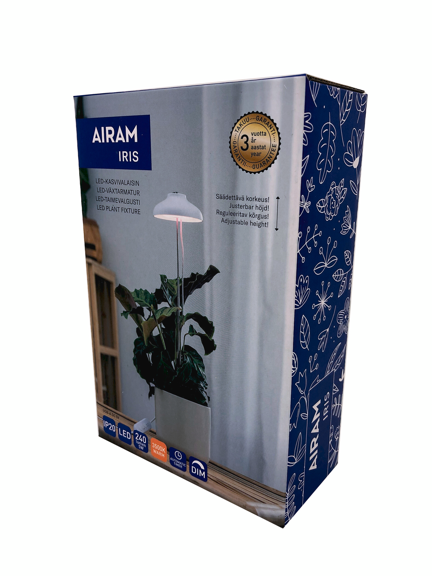 Siro ja sievä kasvivalaisin antaa kasveille tärkeää lisävaloa ja piristää sisustusta. Upota valaisimen varsi suoraan multaan, varren korkeutta voi säätää 100 - 600 mm. Sisäkäyttöön, IP20. Materiaali metalli ja muovi, valkoinen kupu. Led kiinteä 5W 240lm 3500K. 5-portainen himmennys, 3-portainen ajastus. USB-A-liitäntä.